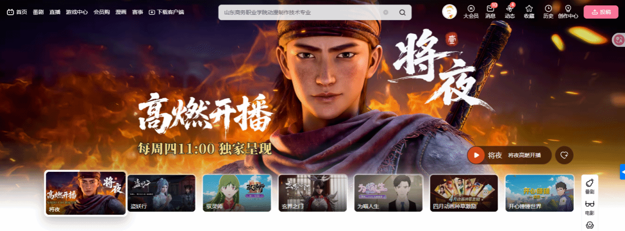 《将夜》登陆B站首页播出,既是对参与学子专业能力的充分肯定,更是学院多年来深耕校企协同育人、深化产教融合的有力彰显。下一步,艺术设计学院将持续优化校企协同育人模式,完善人才培养体系,进一步拓展校企合作的广度与深度,助力学生实现专业成长与职业发展,为区域文化创意产业高质量发展提供坚实的人才支撑。(通讯员:姜俊岐 撰稿:张璇 审核:位汝瑞 于洋 梁倩 值班审核:于晓芸)