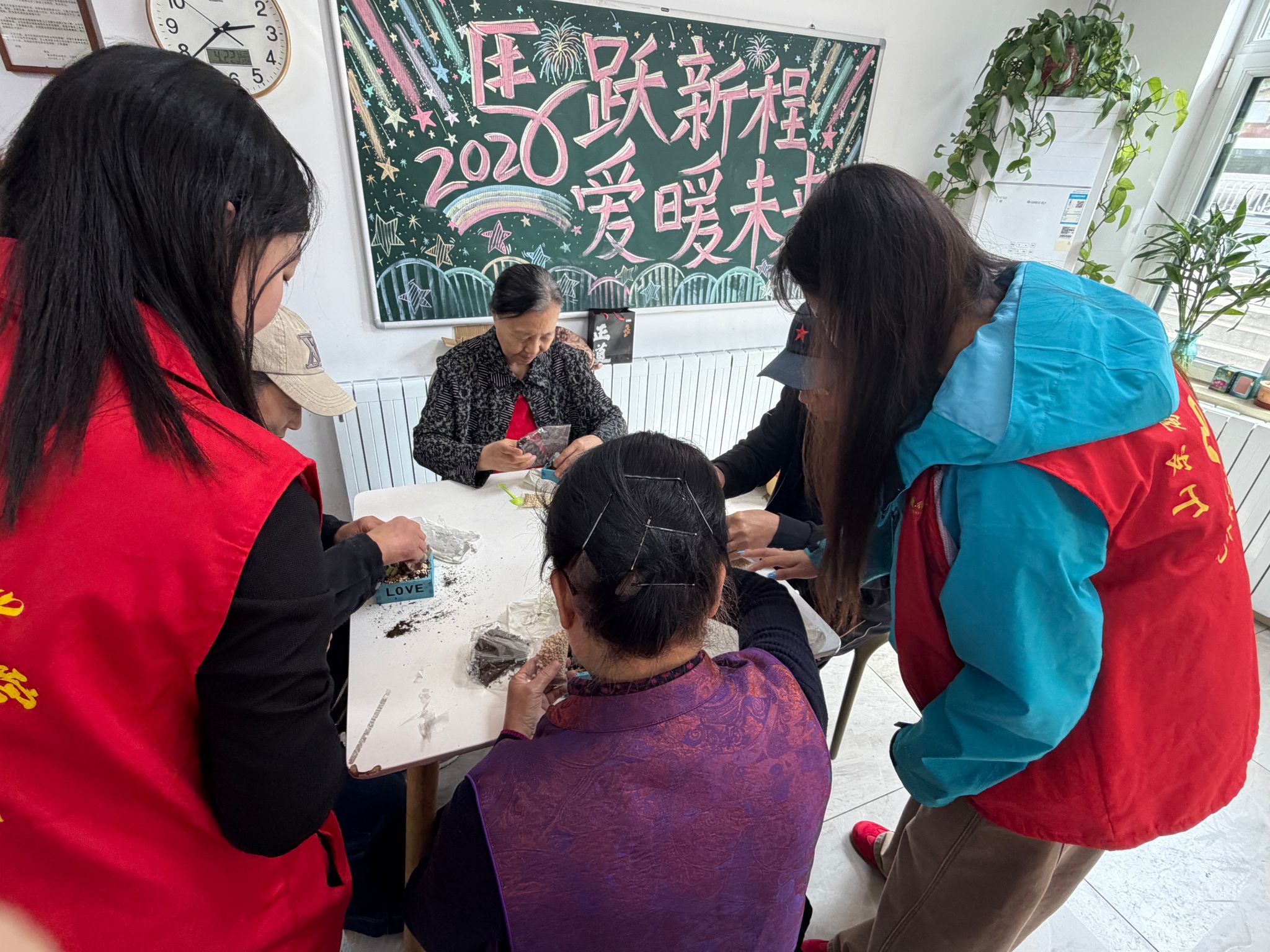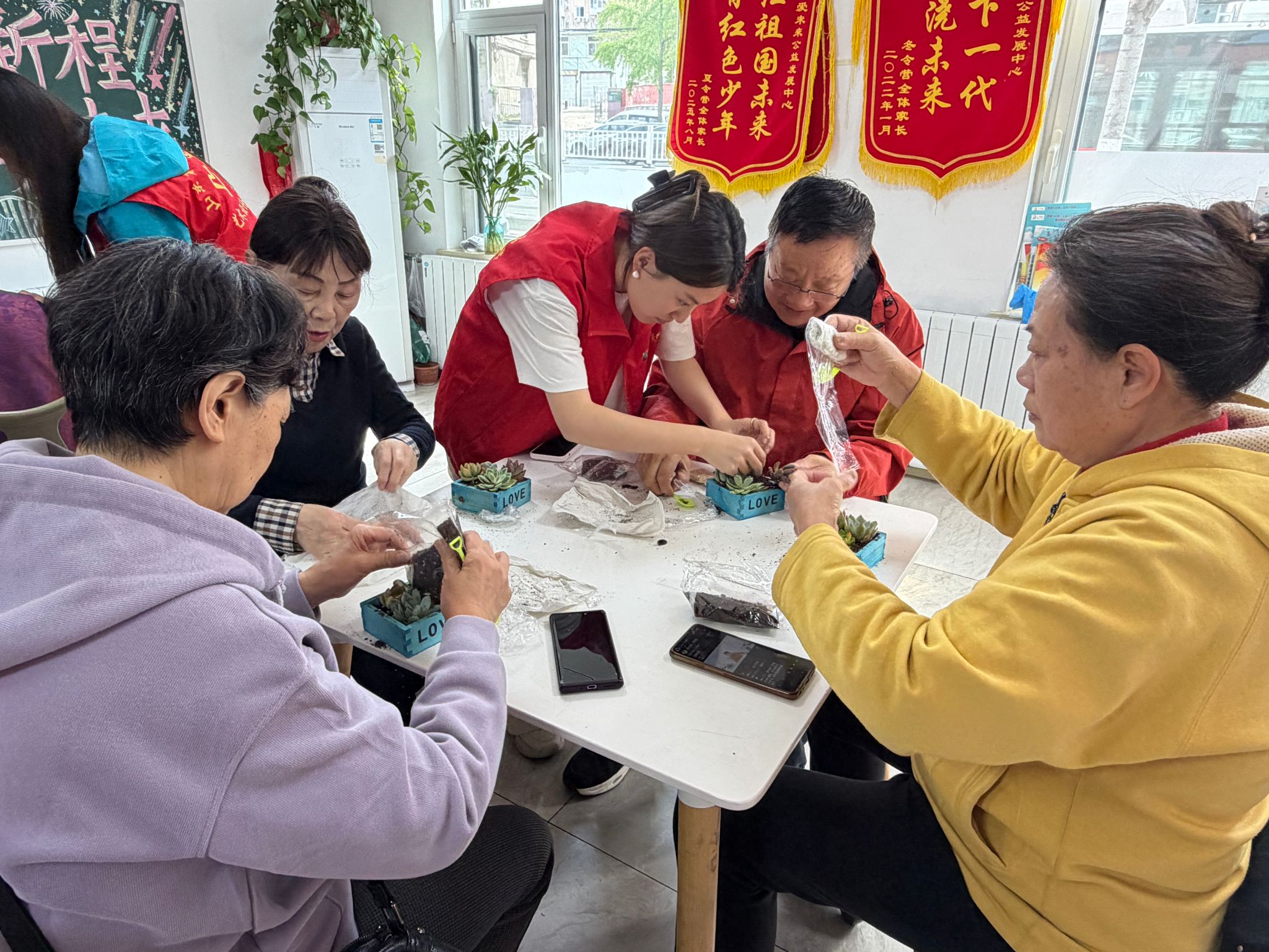 本站讯 在第五十七个“世界地球日”来临之际,为深化校地共建,推动实践育人,4月22日下午,艺术设计学院组织师生走进大学生社会实践基地、党建共建单位——芝罘区东山街道航院社区,与社区“爱未来”党支部联合开展“绿动社区,银发巧手”环保手工嘉年华活动。学院志愿者与社区老党员、居民们齐聚一堂,共同制作微观多肉景观,在携手创作中传递环保理念,增进代际情谊。