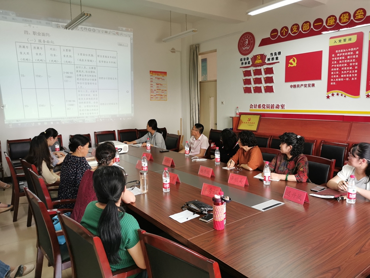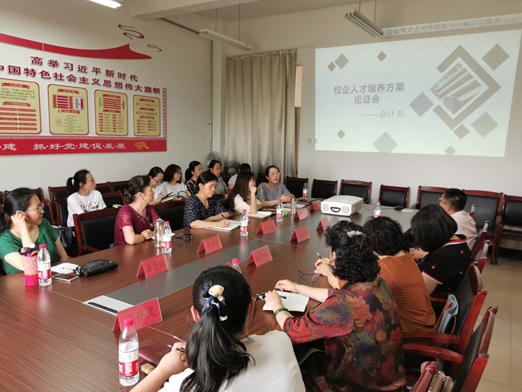 本站讯 为落实立德树人根本任务,坚持面向市场、服务发展、促进就业的办学方向,深化产教融合、校企合作,培养复合型技术技能人才,6月18日下午,会计系召开校企人才培养方案论证会,讨论专业定位、研究课程设置。会议由会计系副主任邹婷主持。