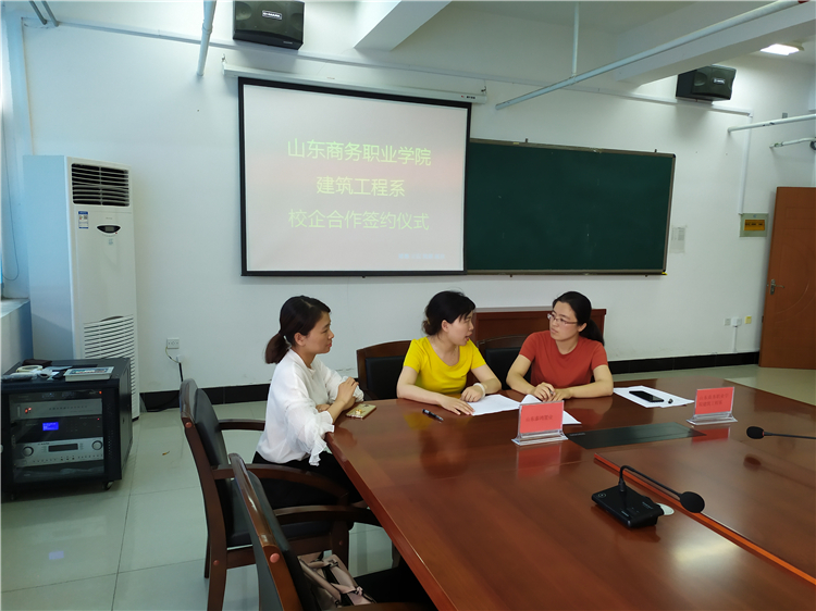 建筑系与山东泰鸿置业有限公司本着友好合作、共同发展的“双赢”原则,依托建筑系现有的机房设施等条件,双方就企业员工技能培训,师资顶岗实践等方面进行了深入探讨,并达成了初步的合作意向。