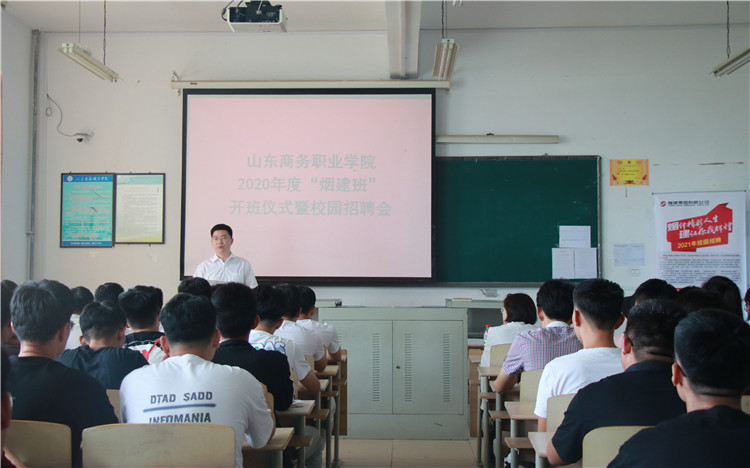 本站讯 9月11日,我校建筑工程系隆重举办2020年度“烟建班”开班仪式暨校园招聘会,建筑工程系、烟建集团有限公司领导、18级“烟建班”学生、18级应聘学生等参加仪式,仪式由建筑系副主任万礼主持。