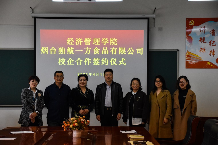 本站讯 春风送暖,人心澎湃,4月1日,在3A311会议室,经济管理学院院长刘晓军、副院长孙琳、电商专业带头人杨建曾与烟台独鲅一方食品有限公司品牌创始人徐桥玉、总经理于伟伟,进行了一场食品与电商新媒体推广碰撞的友好合作会谈。