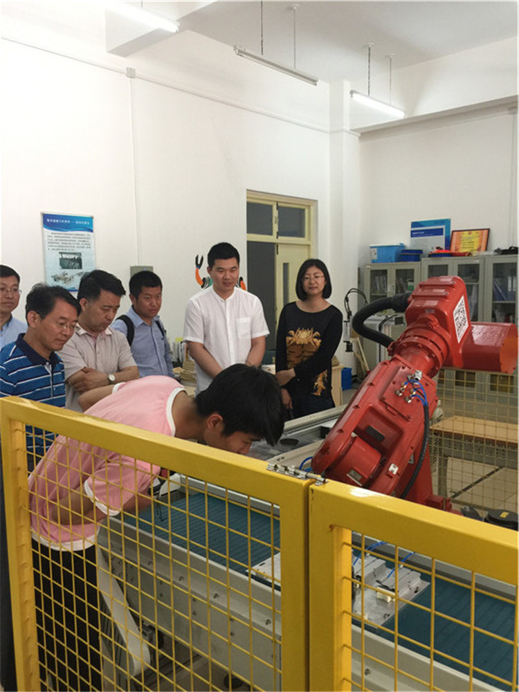在段彩云主任的陪同下,来宾们参观了机电系实训中心、智能电气工作室、数控加工实训室、三维数字化工作室等教学场所及设施。在参观过程中,来宾们观摩了工业机器人、自动化生产线等设备的运行过程,详细了解了机电专业建设现状及发展规划、人才培养目标及技能大赛获奖情况等,对我校注重学生技能培养和实训教育予以了高度评价和充分肯定。