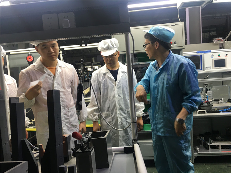 在公司工会主席高鹏、技术研发项目负责人贾萌的陪同下,学校一行三人实地考察了生产车间自动线生产全过程,对待升级的自动线工作过程和升级需求,进行了详细记录,并就车灯生产过程中自动化生产线改进问题与公司技术人员进行商讨,初步达成了合作意向。