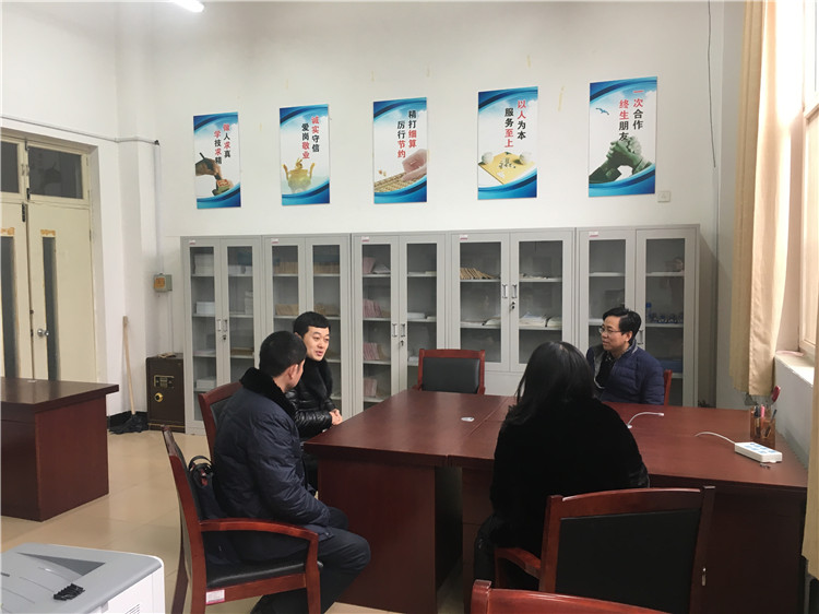 本站讯 为创新教学模式,搭建校企合作新平台,2018年1月9日,会计系副主任崔立升与烟台金卓会计代理记账有限公司总经理邹明霞、副总经理王鹏,金财互联山东分公司副总经理臧海,在会计系实训楼就共建“烟台企业财税共享中心”进行深入探讨,三方表达浓厚兴趣和合作意向。