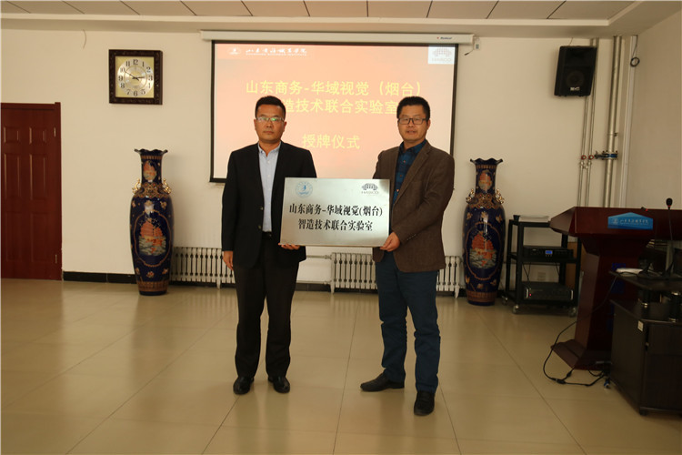 本站讯 10月11日下午14:00,烟台通岳汽车零部件有限公司来我校举行“山东商务-华域视觉(烟台)智造技术联合实验室”授牌仪式。烟台通岳汽车零部件有限公司副总经理张玉庆、学校科研处处长赵永刚、机电工程系主任段彩云等参加了仪式。