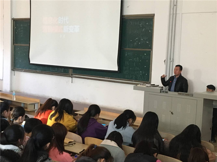 本站讯 11月24日,经济管理系邀请到了山东省绿色食品评审专家库专家张滨来我校,在一号楼第一阶梯教室作了题为"信息时代营销模式新变革”的讲座,经管系市场营销专业全体学生聆听了讲座。