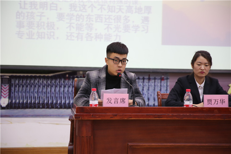 会上,优秀学生代表2017级粮食工程技术专业谢经宝作专业汇报。