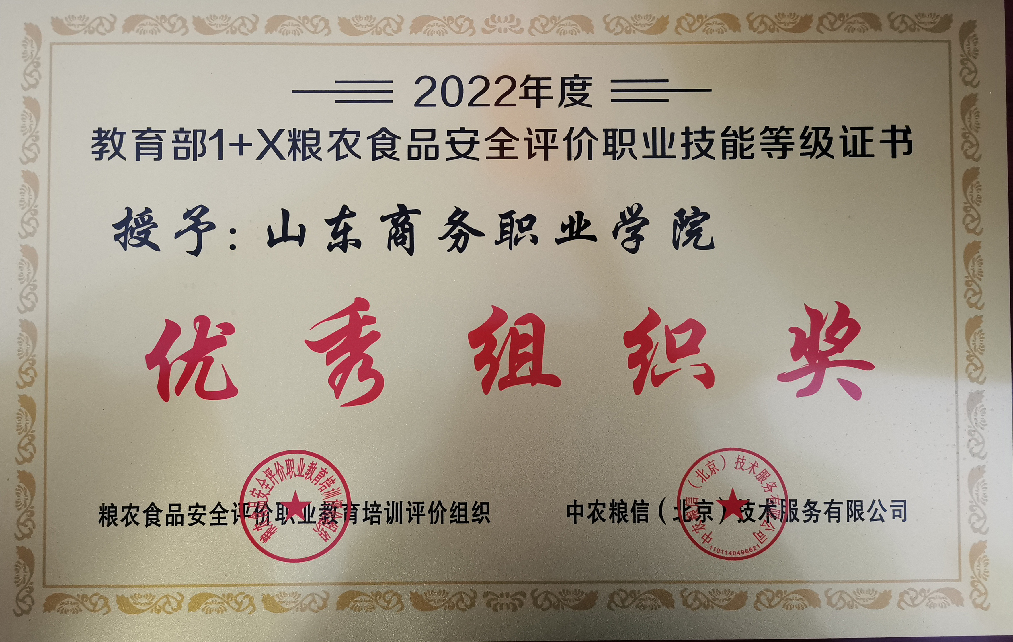 本站讯 近日,中农粮信(北京)技术服务有限公司公布《关于2022年度1+X粮农食品安全评价职业技能等级证书试点工作优秀院校评选结果》,我校粮油食品学院荣获“优秀组织奖”。
