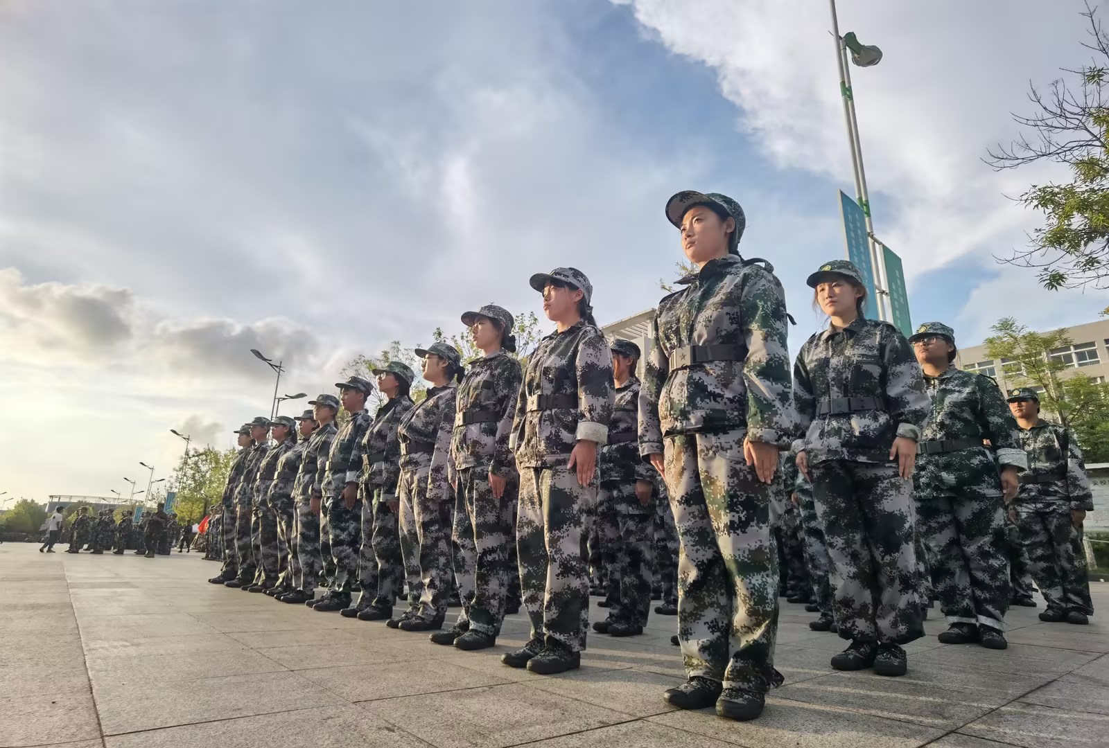 信息工程学院全体新生齐聚中心大道,精神饱满,军姿挺拔。整齐划一的绿色迷彩,意气风发的坚定步伐,在教官的口令声里,同学们认真完成着训练动作,一个个整齐的绿色方阵成为校园中亮丽的风景线。在教官的悉心指导下,同学们从最初动作的略显粗糙,到精准执行指令,不断超越自我、突破自我,体现了信工学子朝气蓬勃、昂扬向上的精神风貌。在军训场地,班主任老师和志愿者们也全程守候,为教官和同学们做好后勤保障工作,保证军训的顺利进行。