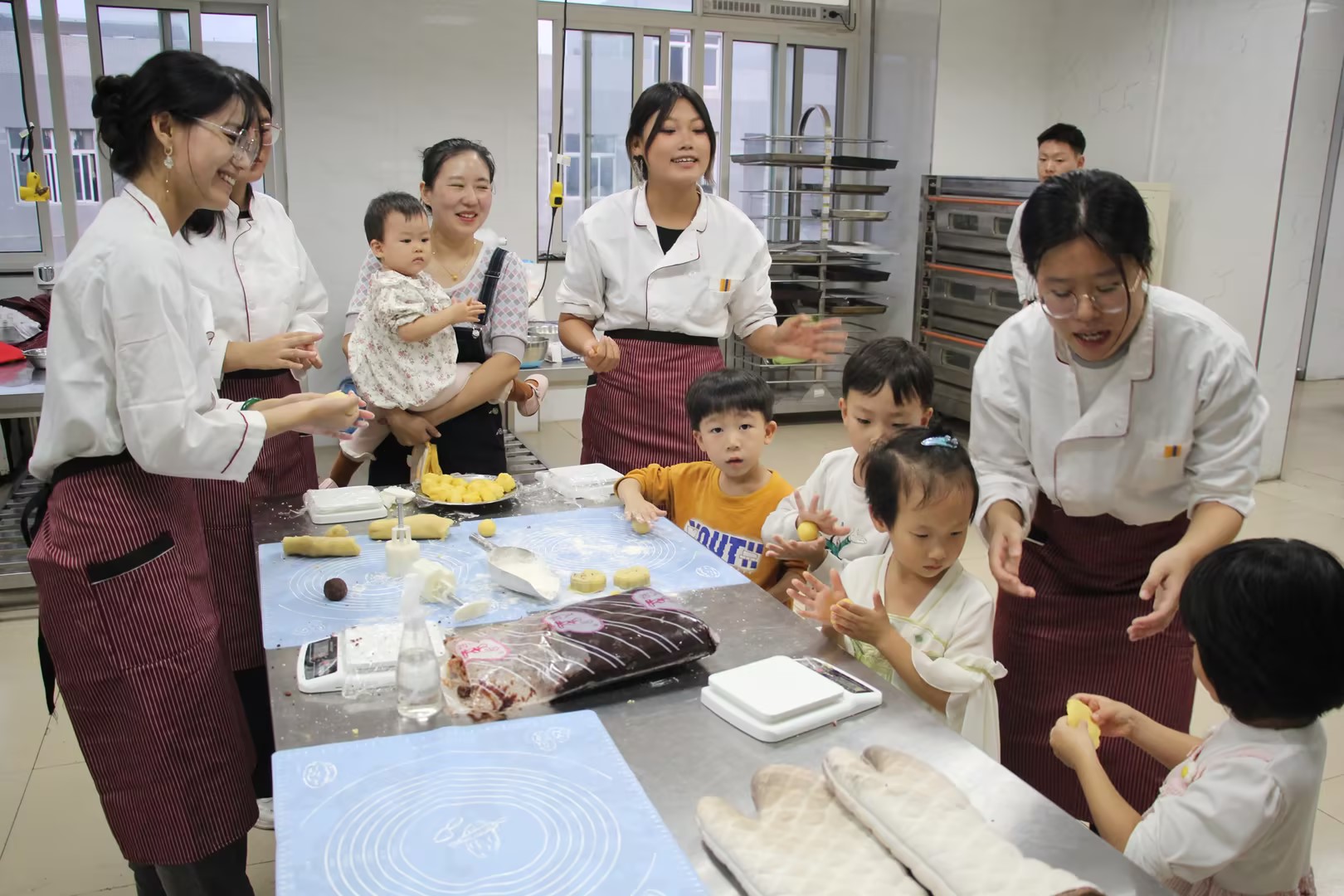 近日,小朋友们欢欣雀跃地走进我校,领取粮油食品学院为他们提供的职业体验免费大餐,开启职业体验教育之旅。在粮油食品学院烘焙教室,小朋友们现场体验了穿汉服做月饼,身临其境感受传统节日的魅力。志愿者学生为小朋友们讲解中秋节的来历和习俗传说,在讲解的过程中,志愿者们从嫦娥奔月讲起,带领小朋友们了解中国航天让神话照进现实的故事。用传统神话故事带入中国航天人“追逐梦想、勇于探索、协同攻坚、合作共赢”的精神,让小朋友们了解航天里的中国式浪漫。月饼一箱一箱出炉,现场小朋友们一阵阵欢呼,“哇!这个月饼好大啊”“原来中秋节的月饼是这么做的”“长大我要做出漂亮的甜品”,现场气氛热烈,欢声笑语不断。