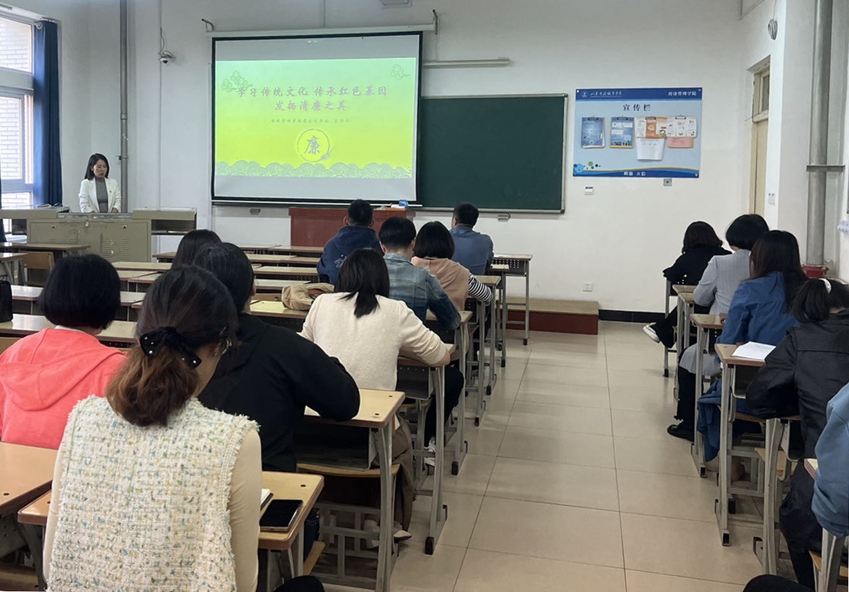 本站讯 理想信念立根固本,传统文化启智润心。经济管理学院高度重视廉洁文化建设,深入贯彻落实党的二十大精神和习近平总书记有关廉洁文化建设的重要论述,为将廉洁文化与师德师风建设、学风建设相结合,落实立德树人根本任务,10月25日下午,经济管理学院党总支书记范彩荣为师生上了一堂廉洁思政大课。