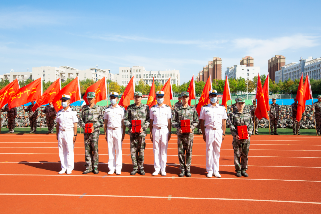 军训团团长刘玉峰宣读《关于表彰军训标兵单位、标兵个人的决定》,各位教官为获得军训标兵的单位和个人颁奖,希望同学们把军训中培养出来的好精神、好作风、好状态保持下去,以饱满的热情、顽强的意志投入到今后的学习和生活中。