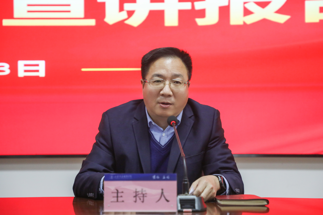 耿建敏在宣讲时表示,党的二十大是在全党全国各族人民迈上全面建设社会主义现代化国家新征程、向第二个百年奋斗目标进军的关键时刻召开的一次十分重要的大会,是一次高举旗帜、凝聚力量、团结奋进的大会。全校上下要把学习宣传贯彻党的二十大精神作为当前和今后一个时期的首要政治任务,要以“学、悟、讲、用”为重点,做到入脑入心学、深思细研悟、分层分级讲、积极主动用,以高度的使命感和责任感,把思想和行动统一到党的二十大精神上来。