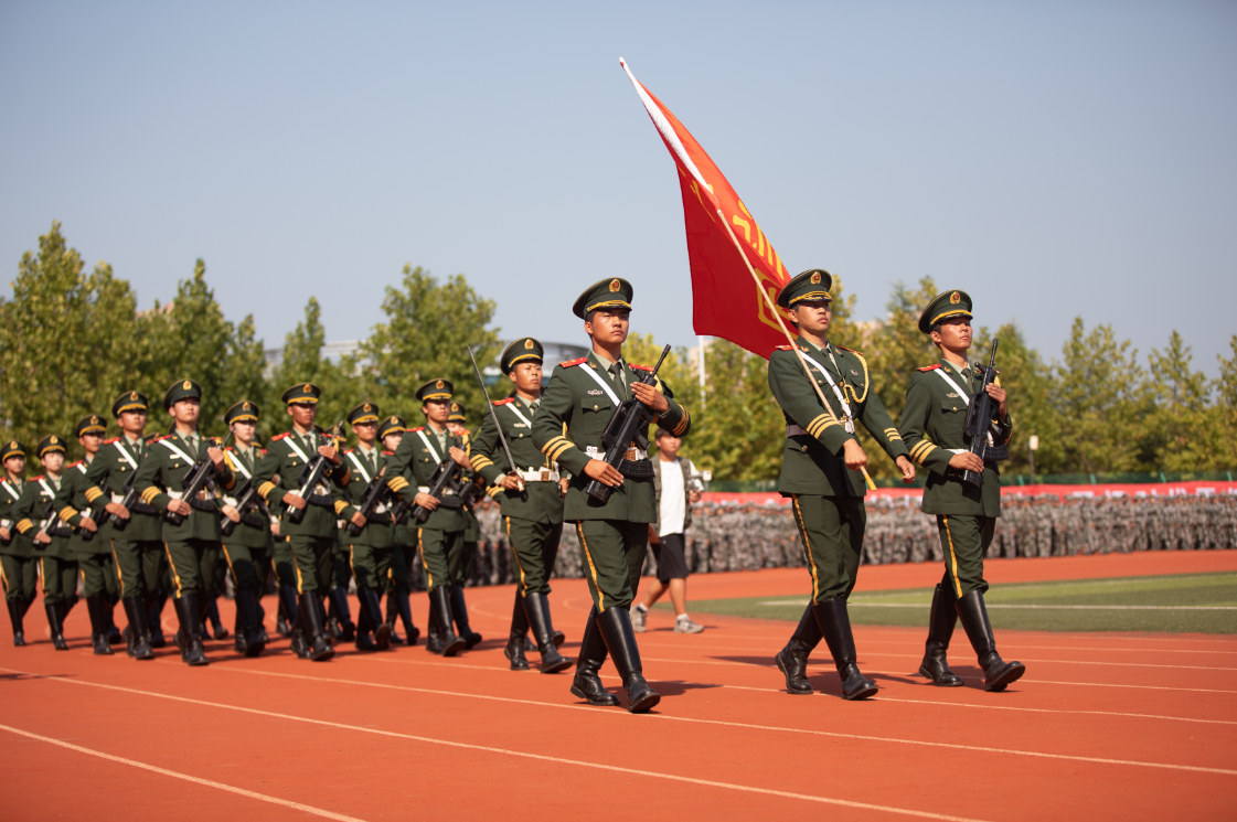 伴随着庄严的国歌声,2023级新生军训结业典礼正式拉开帷幕。