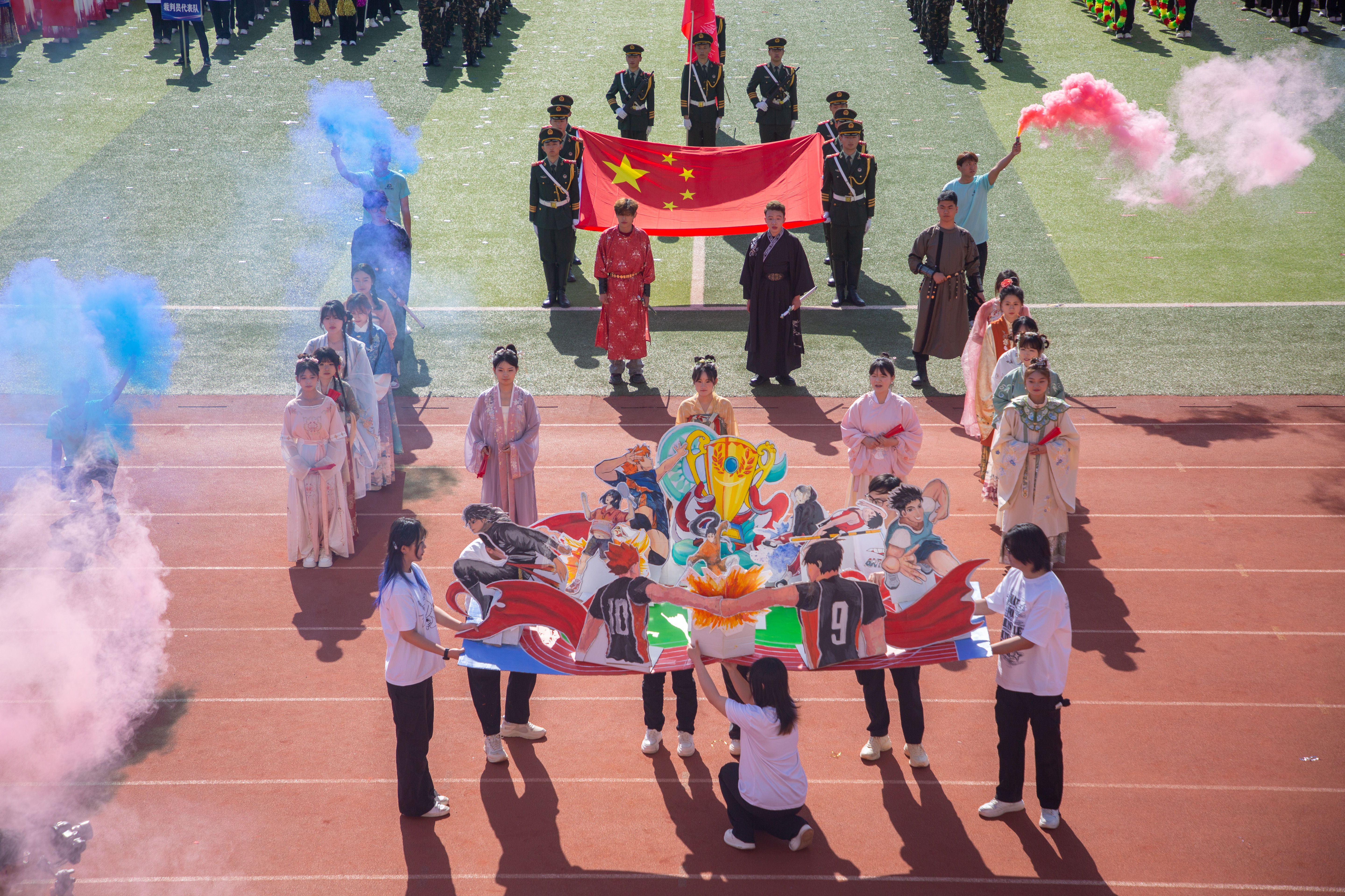5月16日上午7点40分,运动会正式拉开帷幕。伴随着激昂的《运动员进行曲》,国旗护卫队、校旗队、会徽队、花束队、花环队、彩旗队、裁判员代表队、教职工代表队以及各二级学院2022级、2023级运动员代表队依次入场。8个二级学院分别进行了精彩纷呈的节目表演,节目专业特色鲜明、内容健康向上、激情活力四射,不时引来观众阵阵掌声。