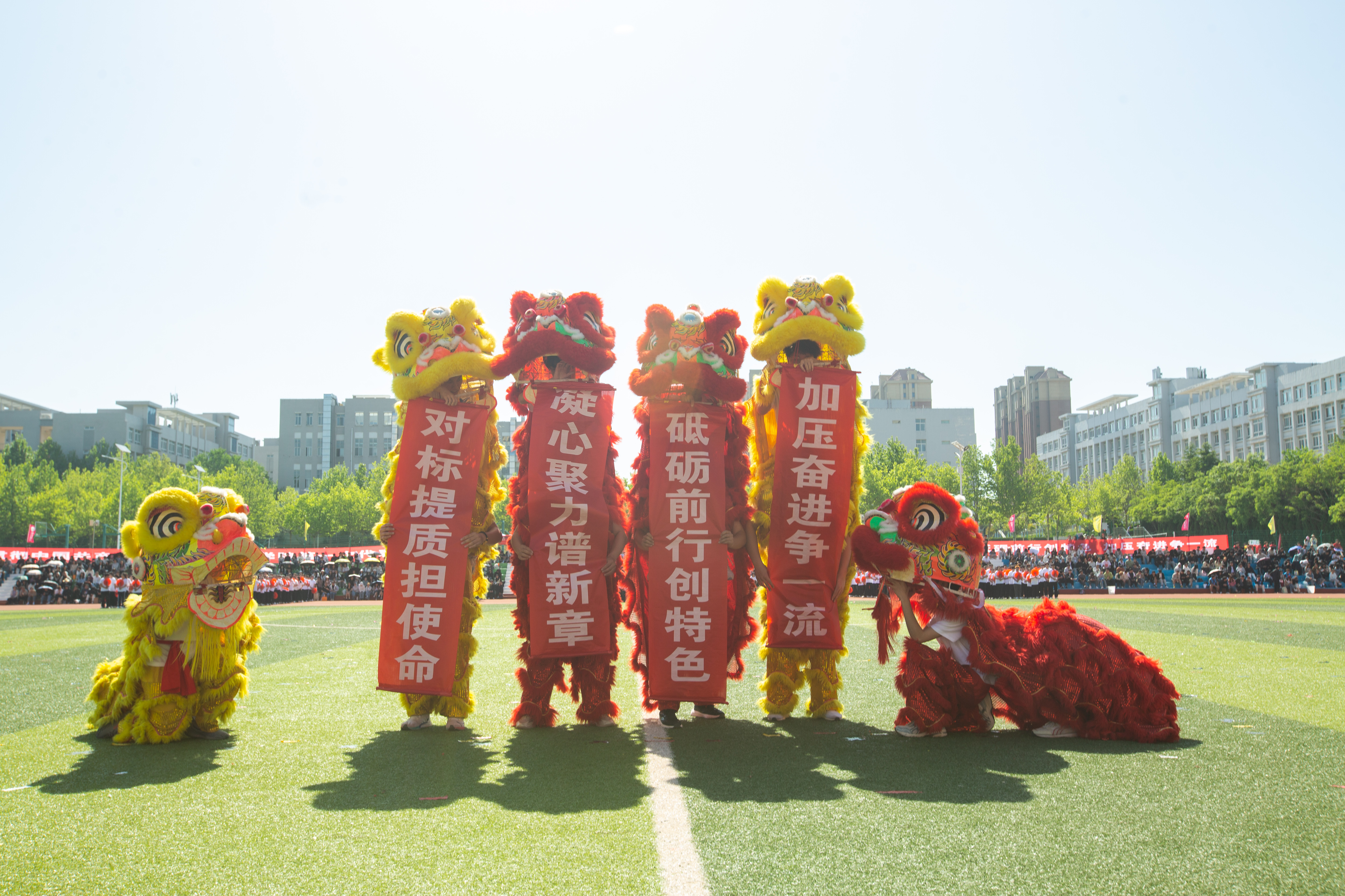 随着学校党委书记孙云茂宣布运动会开幕,大型团体操表演开始。踏着激昂、欢快的锣鼓声,6只“狮子”时而欢呼雀跃,时而霸气威武,动静之间,彰显喜庆、祥和的抖擞精神!狮跃前程,盛世欢腾!新机遇下,全校师生员工对标提质担使命,凝心聚力谱新章,砥砺前行创特色,加压奋进争创新高!让我们团结拼搏,超越梦想,为祖国的教育事业不辞劳苦,奋斗终身!新时代,祝愿我们的祖国繁荣昌盛,祝愿我们的学校荣光无数,再创新高!