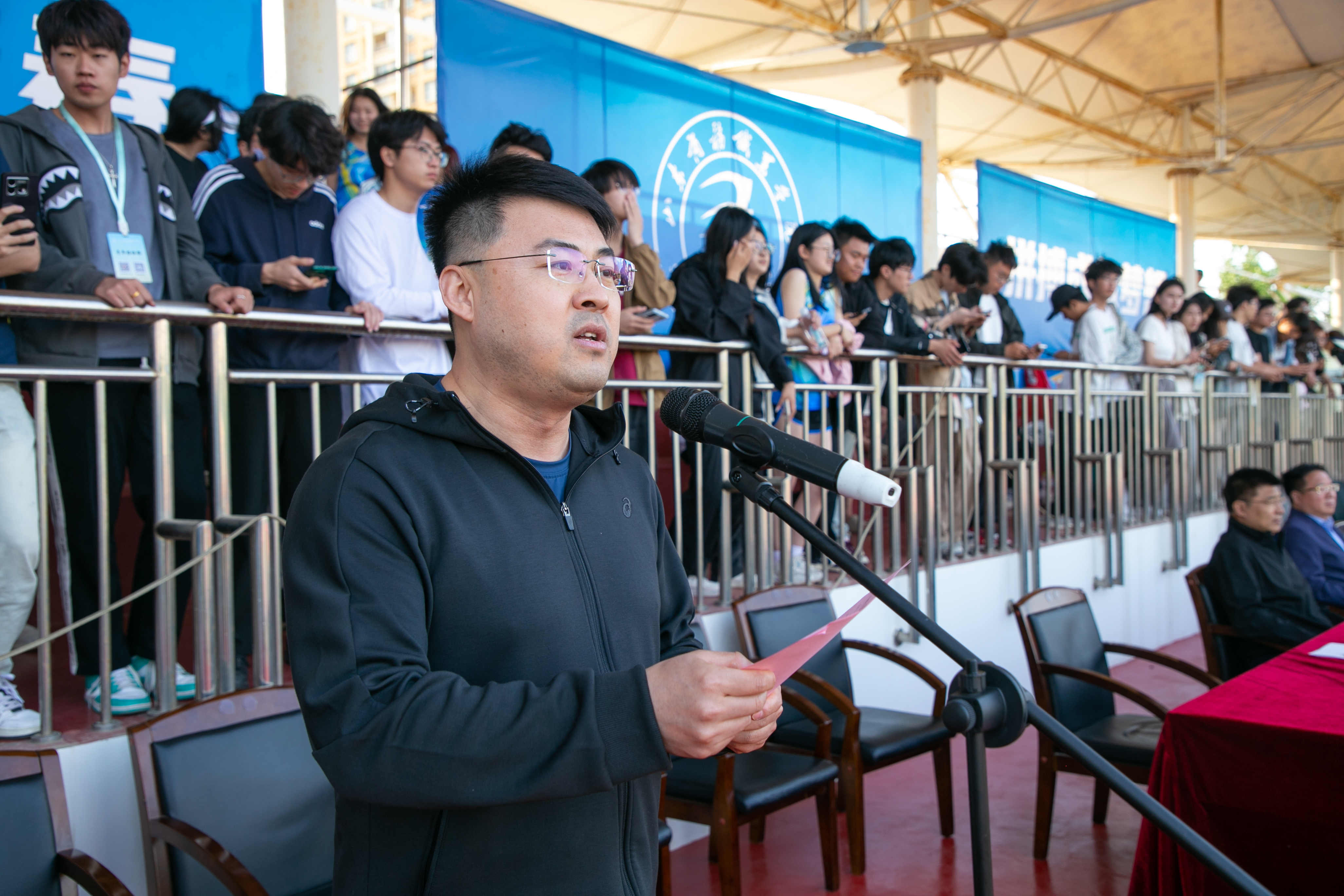 党委副书记张越发表了激情洋溢的开幕词。他指出,今年是中华人民共和国成立75周年,是实施“十四五”规划的关键一年,也是贯彻落实学校第一次党代会精神的开局之年,更是全校上下为建设“行业领先、特色鲜明、全国一流”高职院校加压奋进之年。这场赛会,是我校一年一度展示师生体育风采、呈现体育发展成果的大舞台。希望各位参赛运动员充分发扬顽强拼搏、不怕困难的体育精神,坚持“友谊第一,比赛第二”的原则,规范参赛、文明参赛,赛出水平、赛出风格。