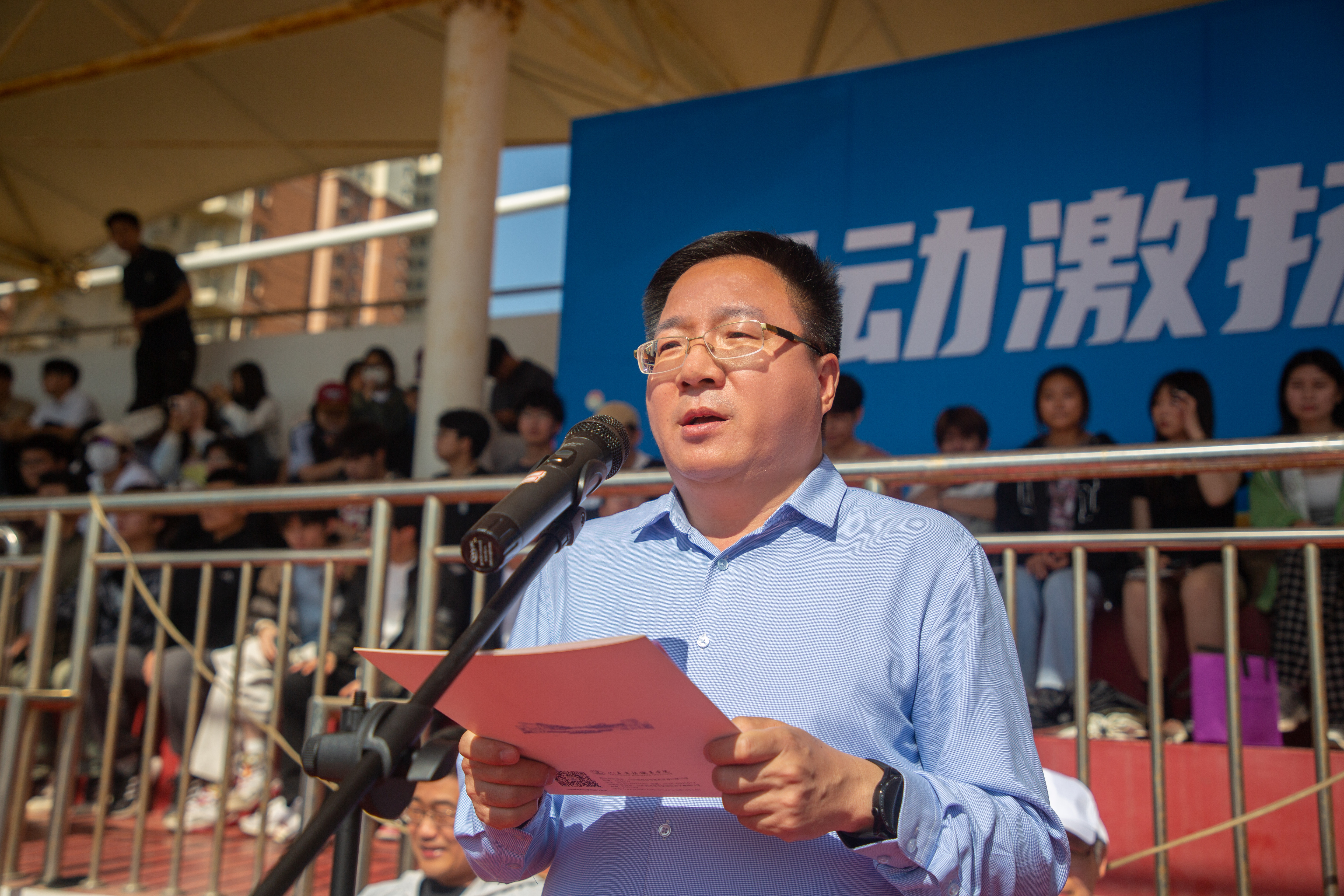 党委委员、副校长孙玉林在闭幕式上致辞。他指出,无论是精彩壮观的开幕式,还是各项竞技比赛,都充分展示了商务学子积极向上、奋力拼搏的青春风采;充分体现了我校师生团结奋进、勇攀高峰的精神风貌。他希望广大同学把在运动会中展现出来的永不服输、奋勇争先、团结协作、热爱集体的精神继续发扬光大,撸起袖子加油学,努力实现个人成长与学校发展同频共振。希望全体教职工从本次运动会中汲取力量,对标对表,加压奋进,以更加高昂的状态,满怀激情和豪情投入到工作和生活中,埋头苦干实干,心无旁骛干事创业,振奋精神争先进位,推动学校各项事业高质量跨越发展,为商务更加美好的明天而努力奋斗。(通讯员:王钊 撰稿:宋蕾蕾 审核:李刚 梁倩 值班审核:成雪)