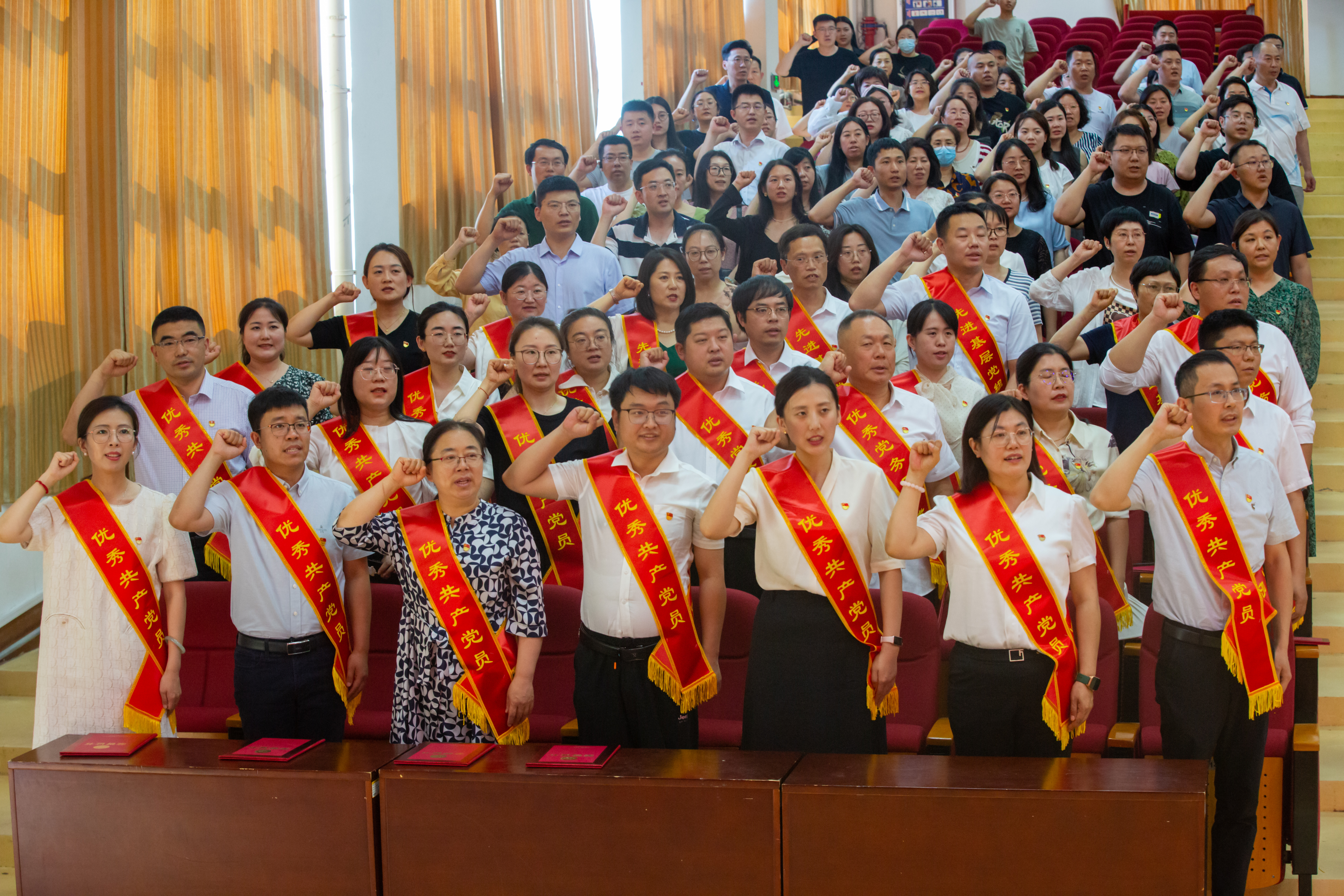 学校领导分批次为先进基层党组织、优秀共产党员和优秀党务工作者进行颁奖。