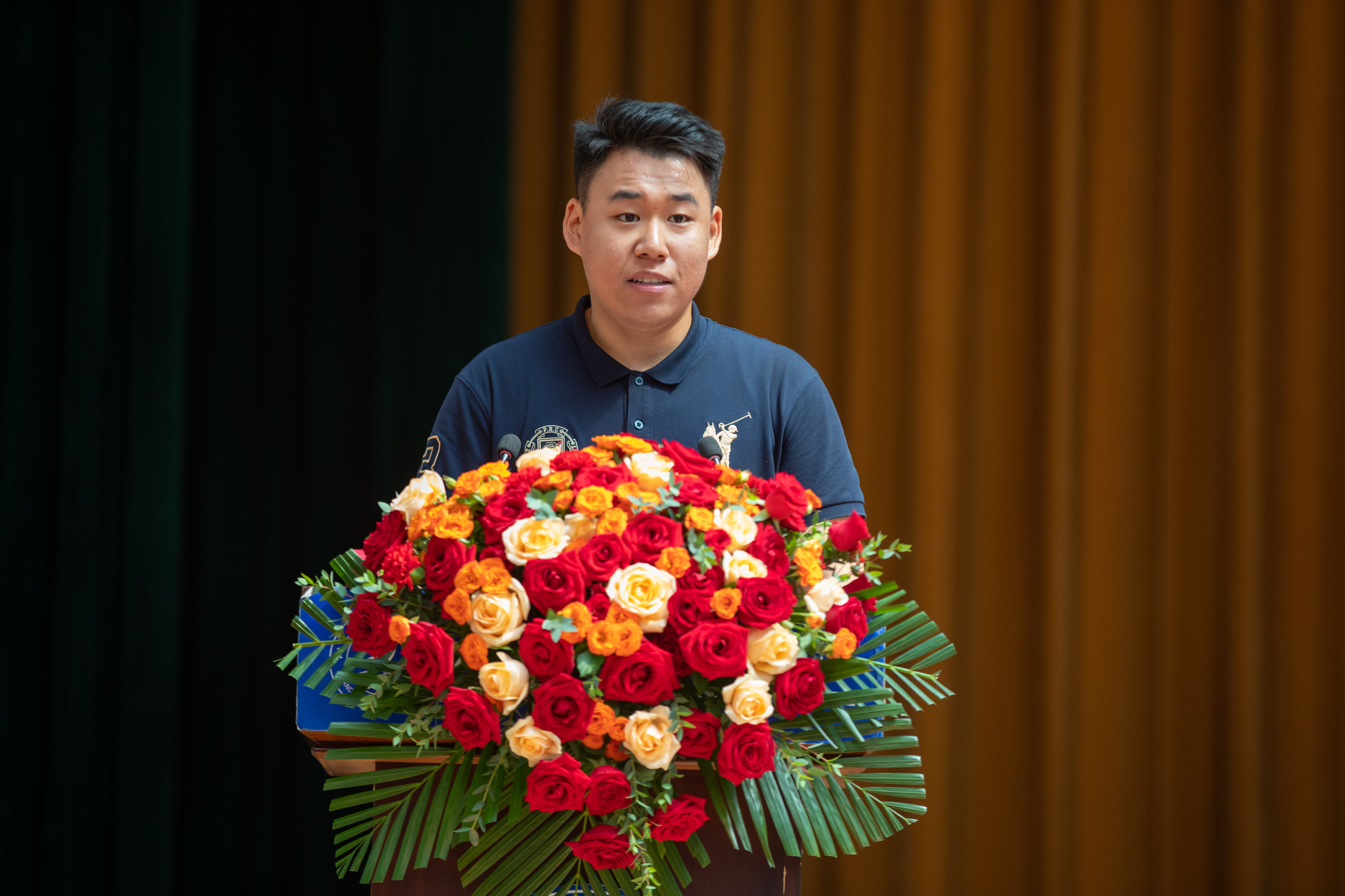 毕业班教师代表、建筑工程学院辅导员毕仲辉,2024届毕业生代表、文化旅游学院酒店管理专业隋松昊,往届毕业生代表、齐鲁最美基层高校毕业生、2013届粮油食品学院王毓川,家长代表、智能制造学院工业机器人技术专业毕业生周文喆的母亲依次发言。