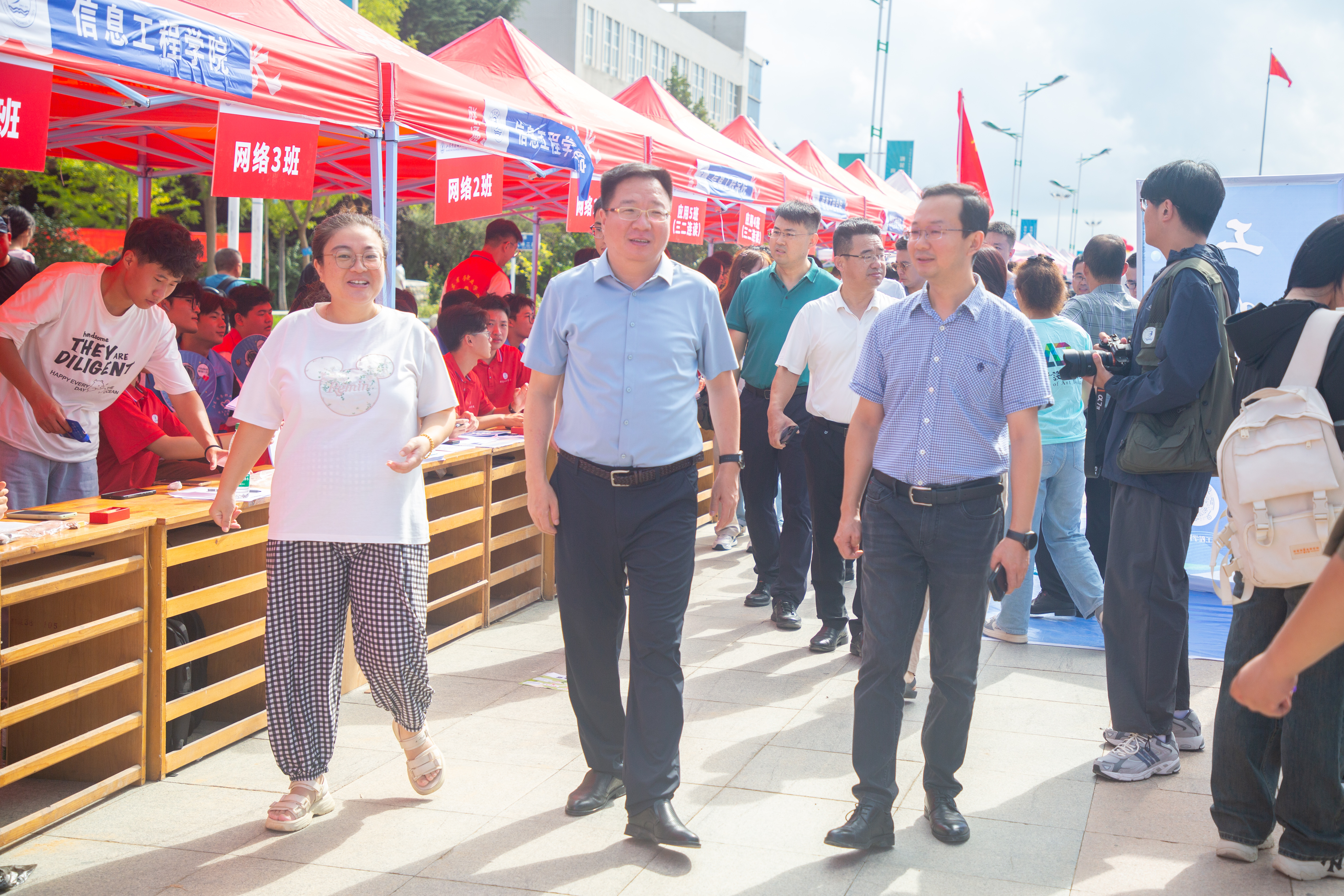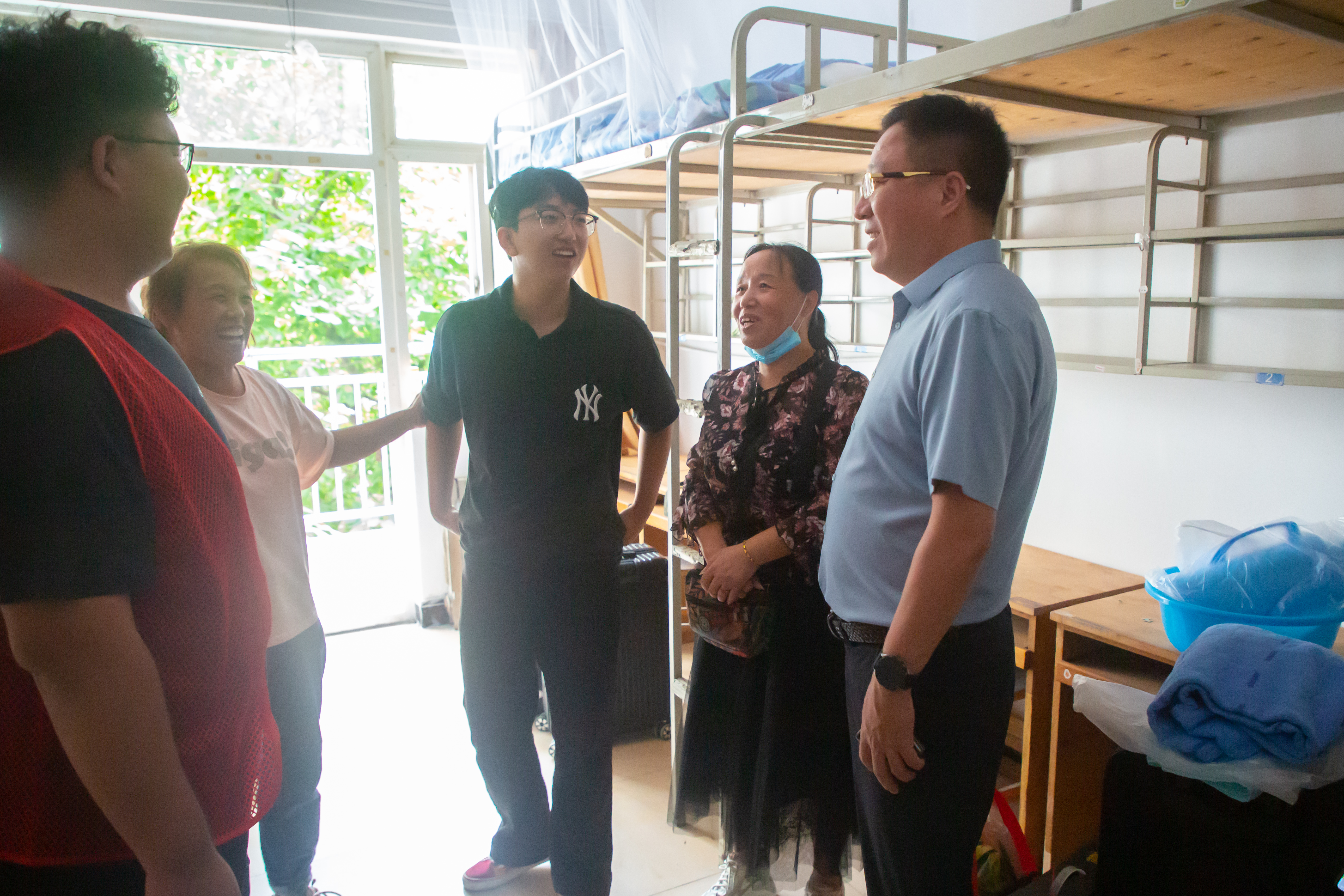 学校领导张越、魏才奎、于邢香、孙玉林、邵军、孙芹宝及相关部门负责人来到迎新现场,看望前来报到的新生和家长,慰问一线工作人员,检查指导迎新工作。校领导仔细了解新生报到流程、住宿安排及新生报到等相关情况。在新生公寓,查看了新生住宿环境和生活用品等,与刚入住的新生及家长亲切交流,希望同学们坚定信心,学好本领,努力成为可堪大用、能担重任的时代新人。