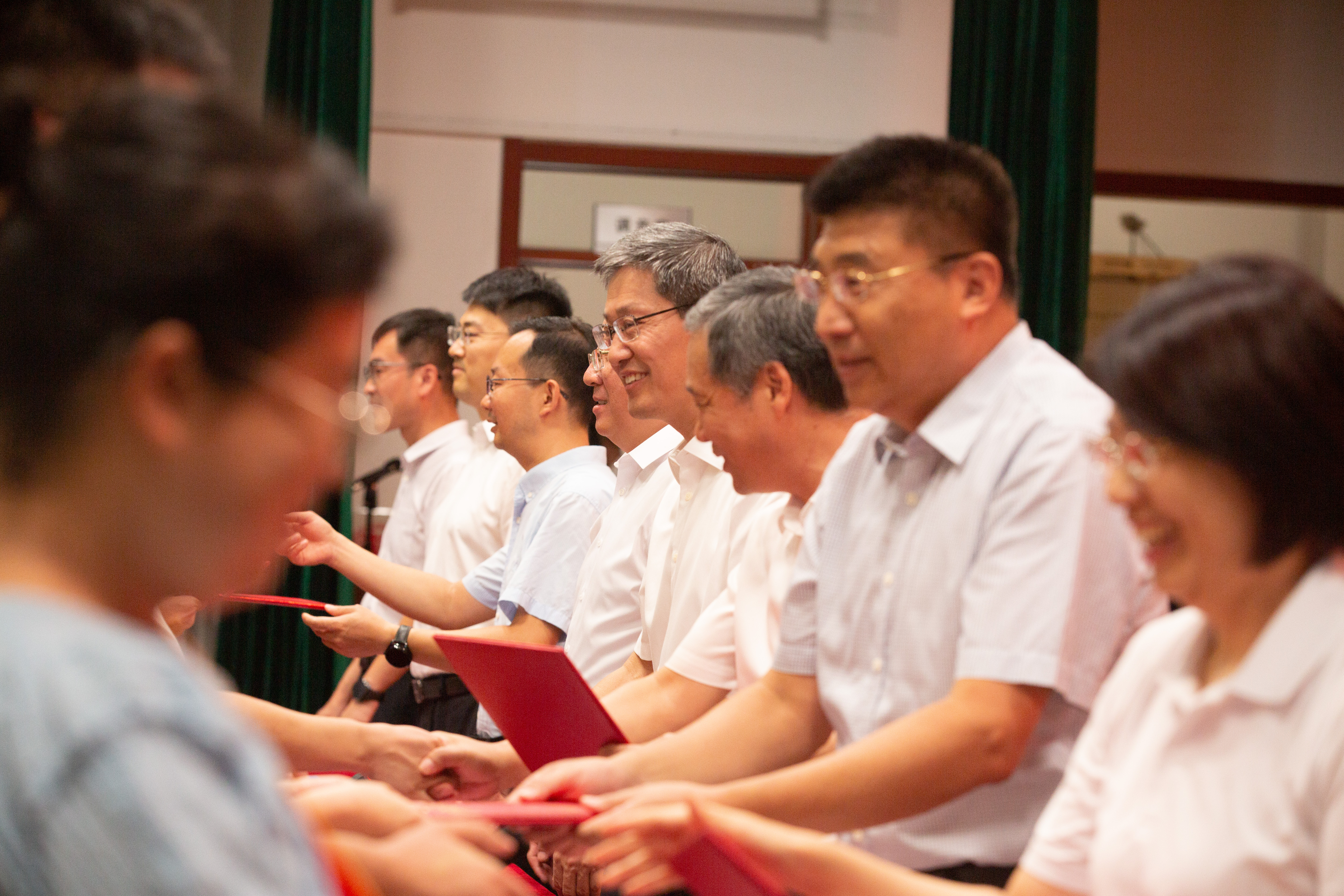党委副书记张越宣读获得省级荣誉称号和省、校系列教学比赛获奖人员名单及学校关于表彰“优秀教育工作者”“优秀辅导员”和“优秀班主任”的决定。校领导分别为省级荣誉称号和省、校系列教学比赛获奖代表、“优秀教育工作者”“优秀辅导员”和“优秀班主任”颁发证书。