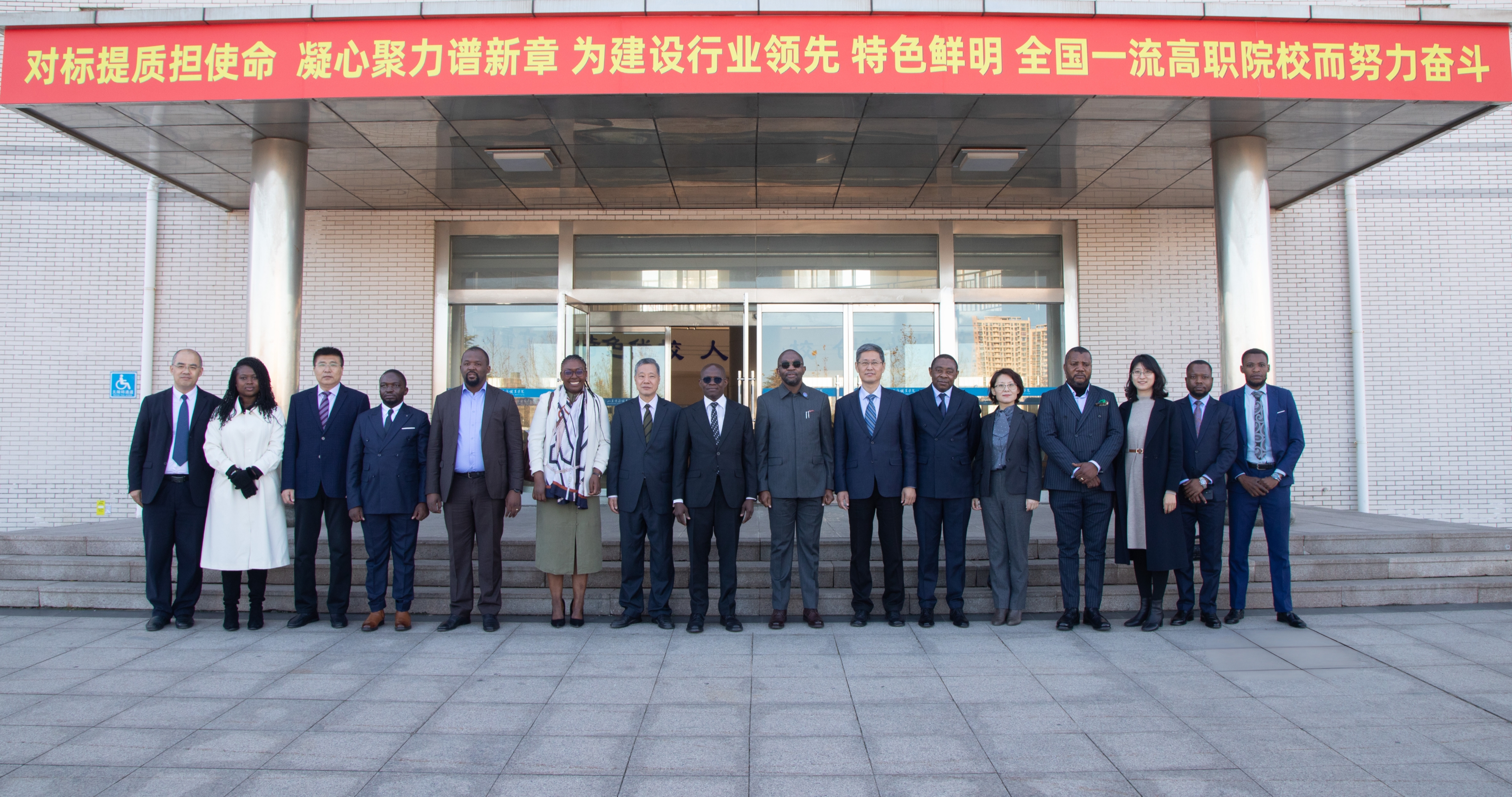 本站讯 11月23日,刚果(金)职业培训部部长埃基拉·利孔比奥·马克、国民教育与新公民部副部长凯扎穆德鲁·穆西西里·让·皮埃尔、刚果(金)驻华大使馆一等秘书坦比·赞贝拉·亨利一行11人来校访问交流,烟台市人民政府外事办公室副主任杨学萍陪同访问。学校党委书记孙云茂,党委副书记、校长王发明,党委委员、副校长张云生,各学院负责人陪同来宾参观学校实训中心并出席会议。会议由王发明主持。