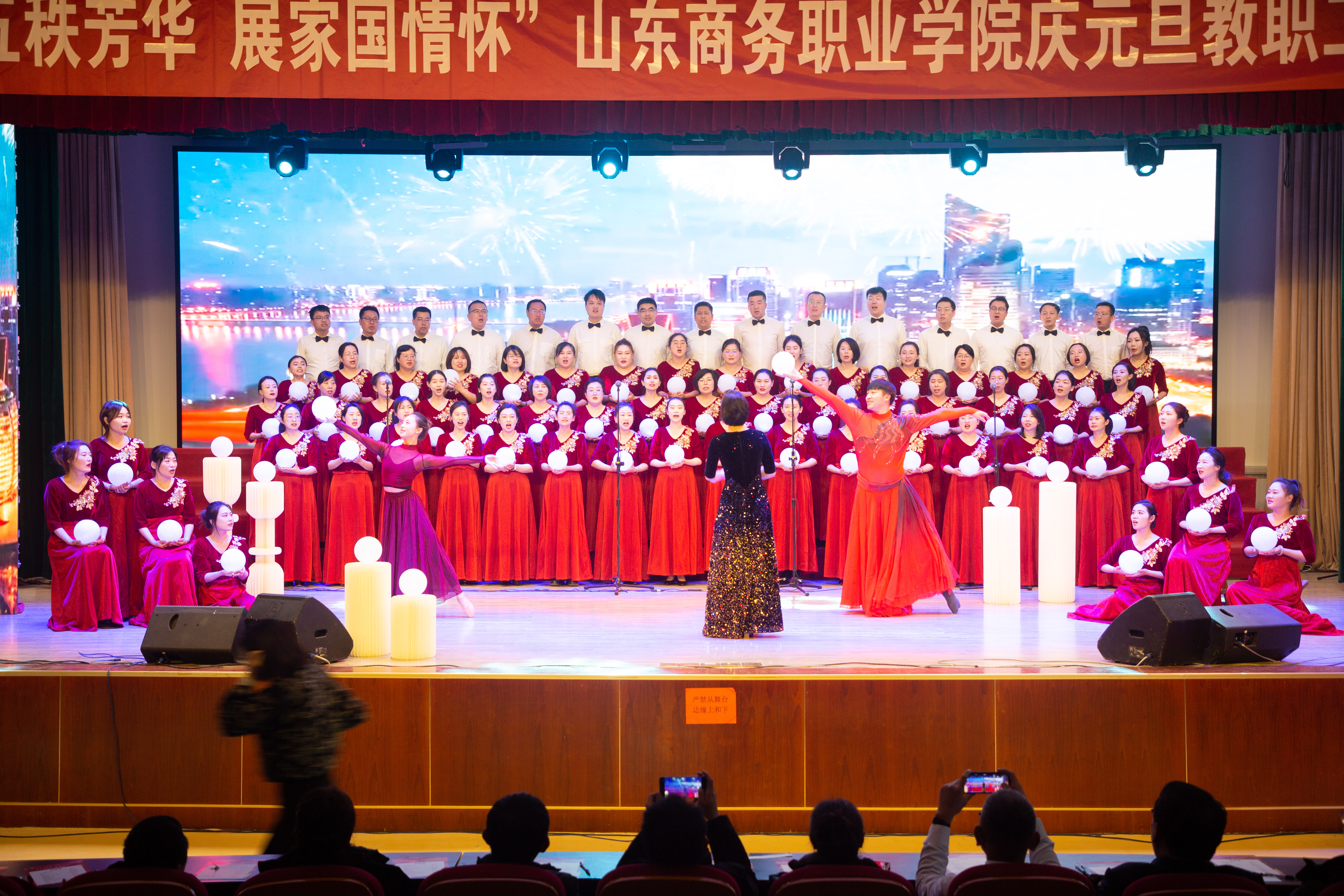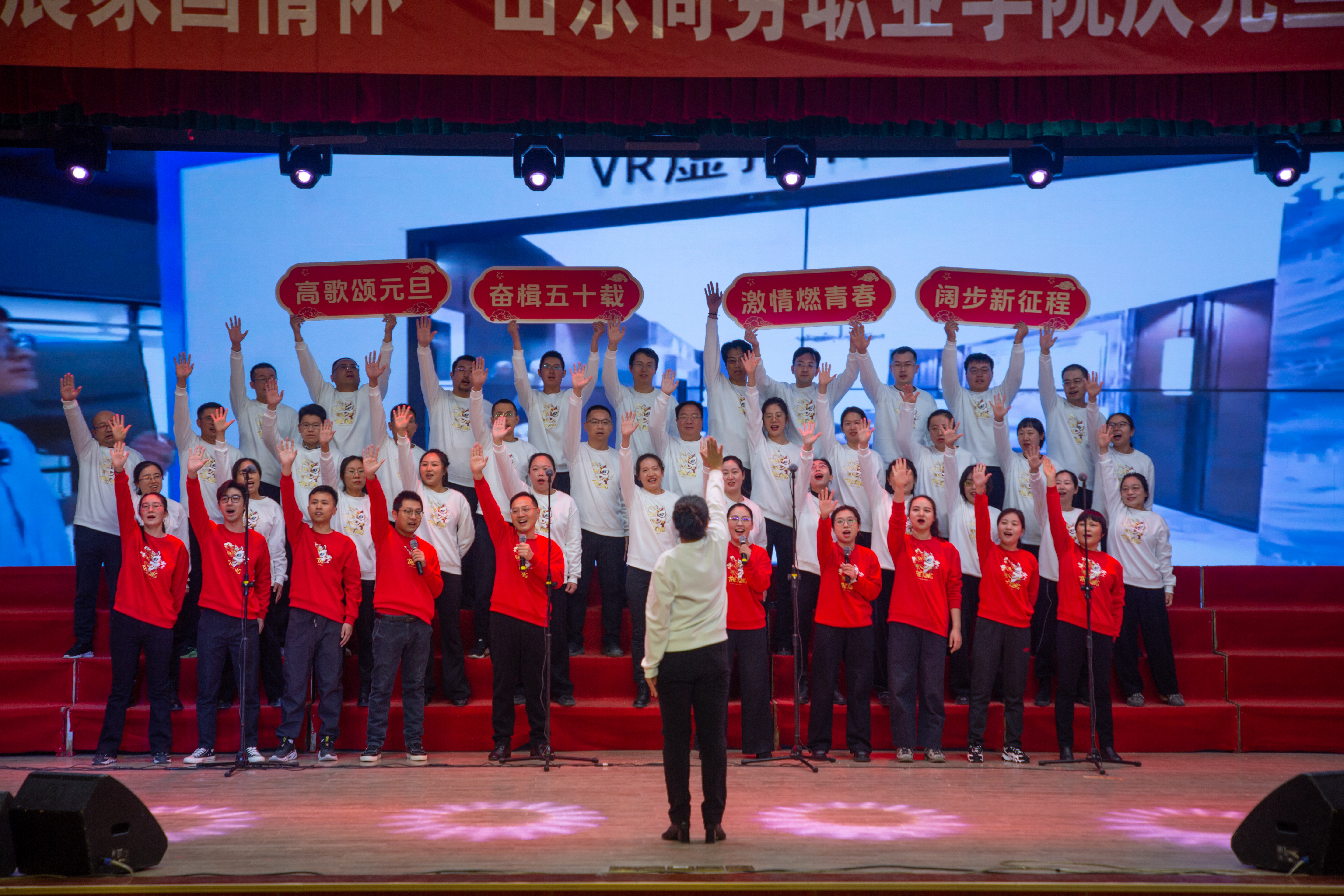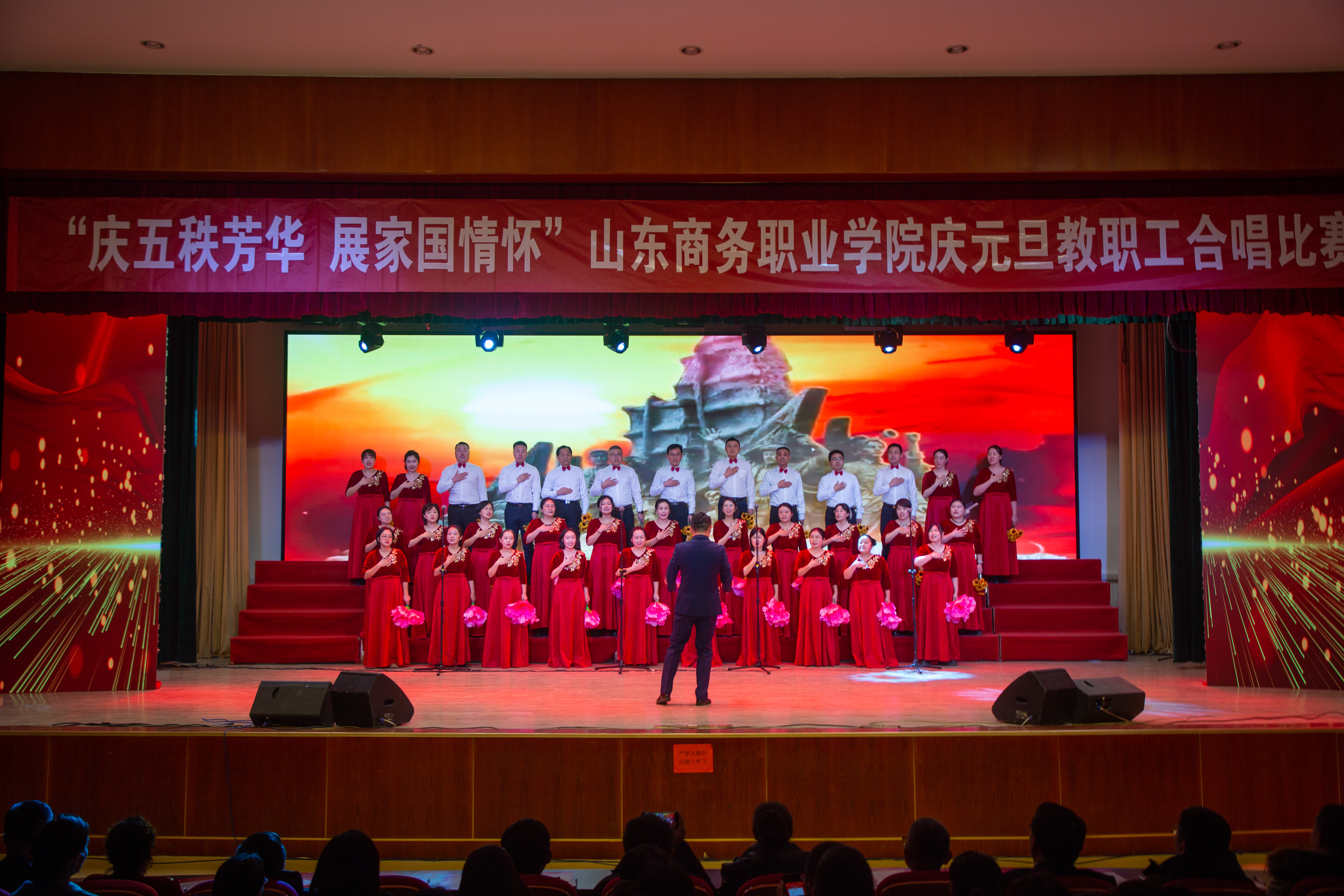 本站讯 庆五秩芳华,展家国情怀。12月31日,我校2025年教职工合唱比赛在音乐厅举办。校领导孙云茂、王发明、张越、魏才奎、于邢香、孙玉林、邵军、孙芹宝,离退休老同志、全体教职员工参加了本次活动。