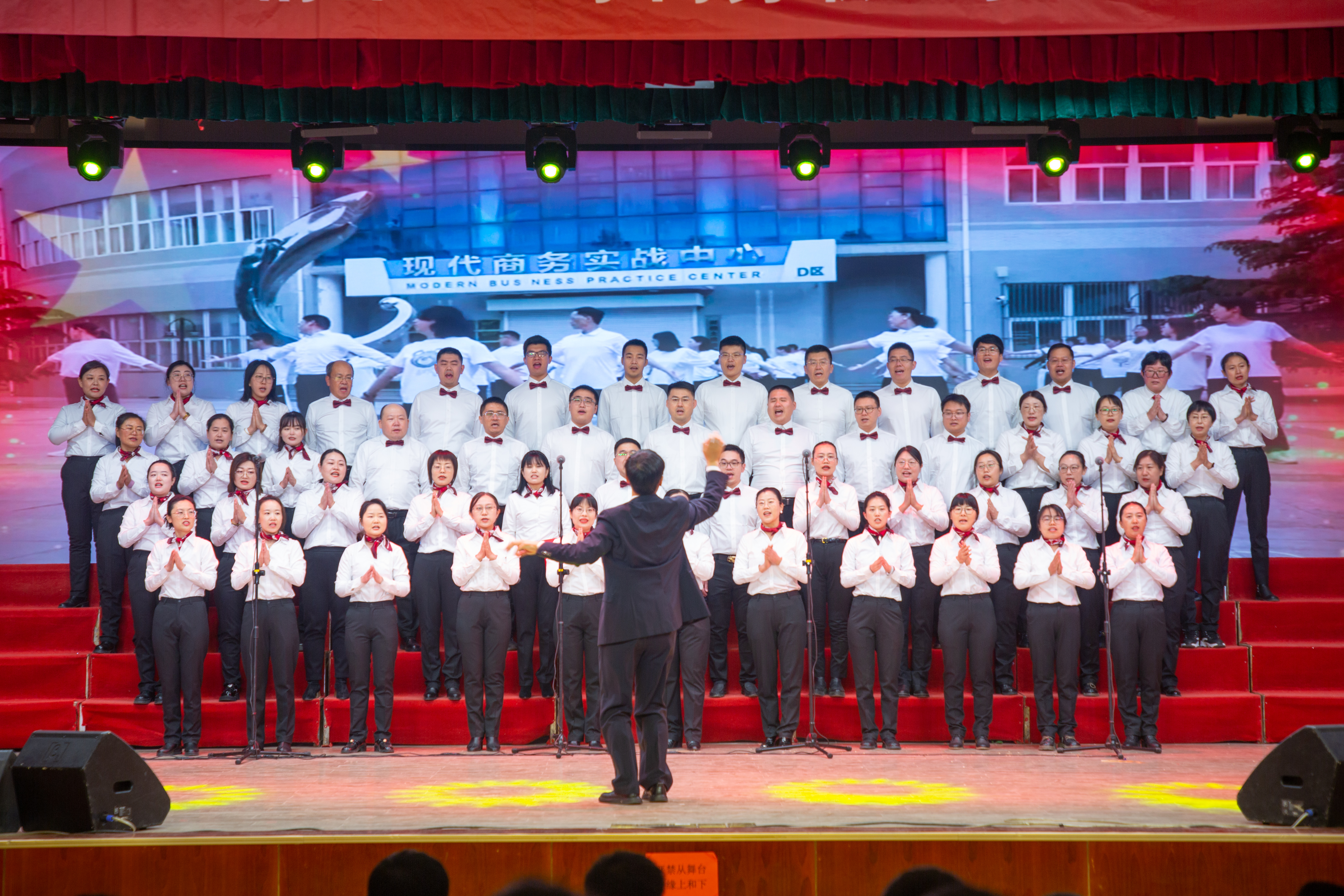 《我和我的祖国》,基础工会通过朗诵加合唱的形式,表达了对祖国的热爱和赞美之情;教辅工会带来的《祖国不会忘记》,歌颂了无数为祖国默默奉献的无名英雄;艺设工会带来的《我爱你中国》,表达了对祖国的满腔炽热和真挚的爱国主义情感;学管工会带来的《弹起我心爱的土琵琶·在希望的田野上》,饱满的情绪、新颖的联唱,赢得了全场阵阵掌声; 经管工会带来的《没有共产党就没有新中国》,展现了中国共产党的光辉历史和伟大功绩,唱出了对党的无限忠诚;行政分会带来的《我们走在大路上》,旋律积极向上,节奏明快有力,具有强烈的时代感和号召力;智造分会带来的《如愿》,以舞台剧的形式呈现给观众,让大家眼前一亮;文旅分会带来的歌伴舞《灯火里的中国》,用灵动的舞姿、深情的歌声,展现出一幅充满活力与希望的盛世画卷。整场比赛在全体教职工共唱校歌《启航》中落幕。