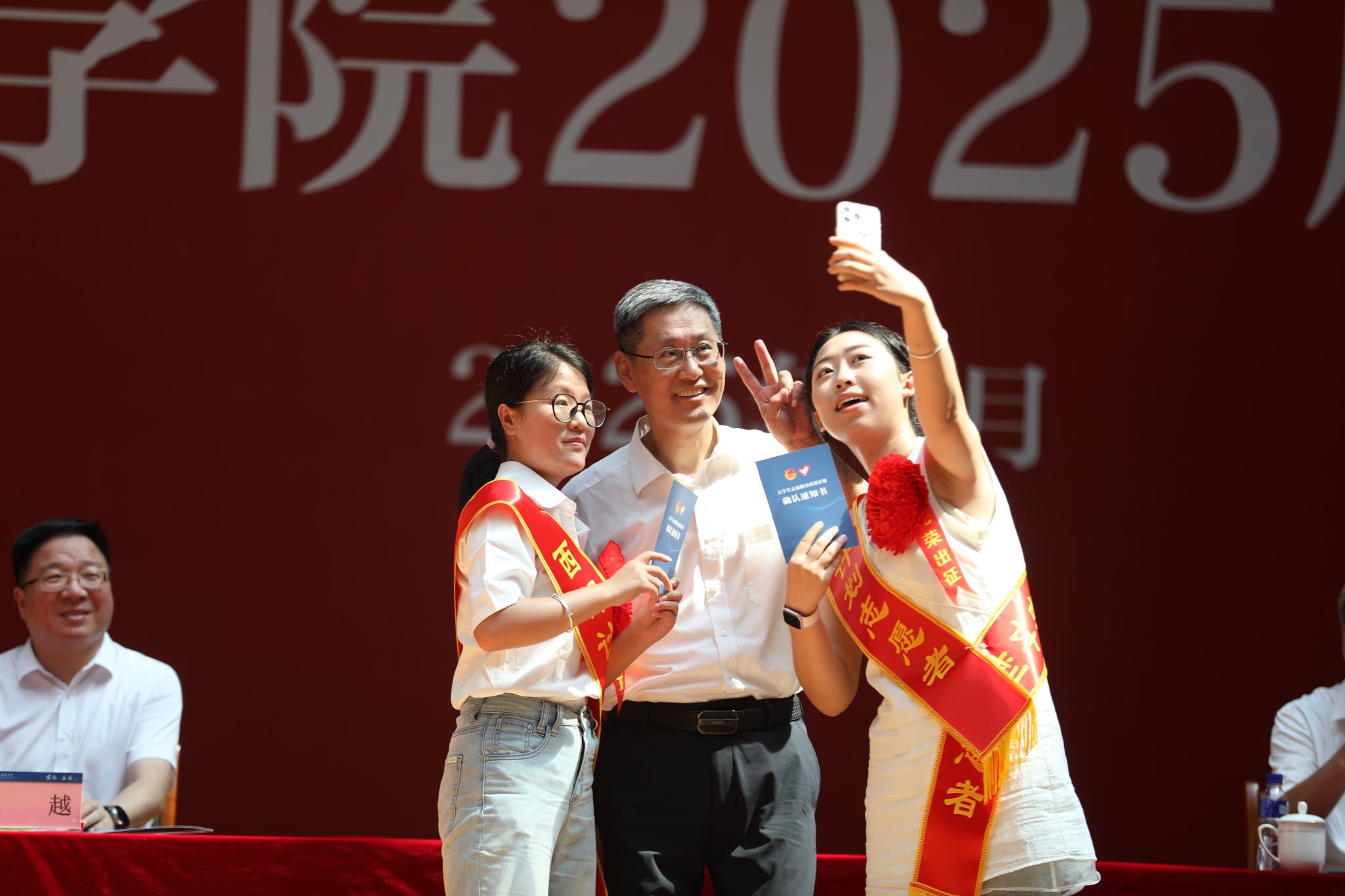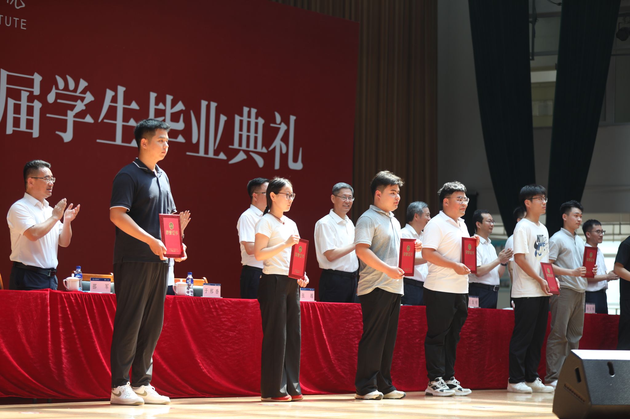 党委副书记张越宣读《关于表彰2025届校级优秀毕业生的决定》,优秀毕业生代表上台领奖。