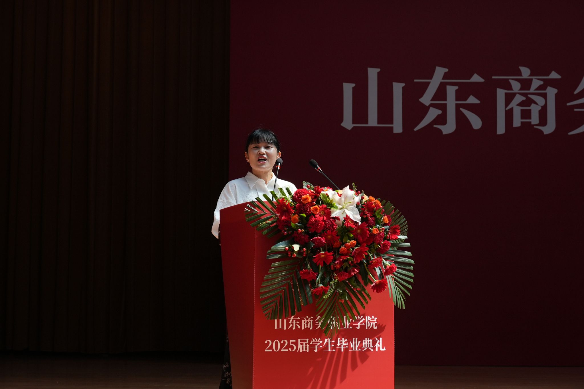 2025届毕业生代表、粮油食品学院安欣怡发言。