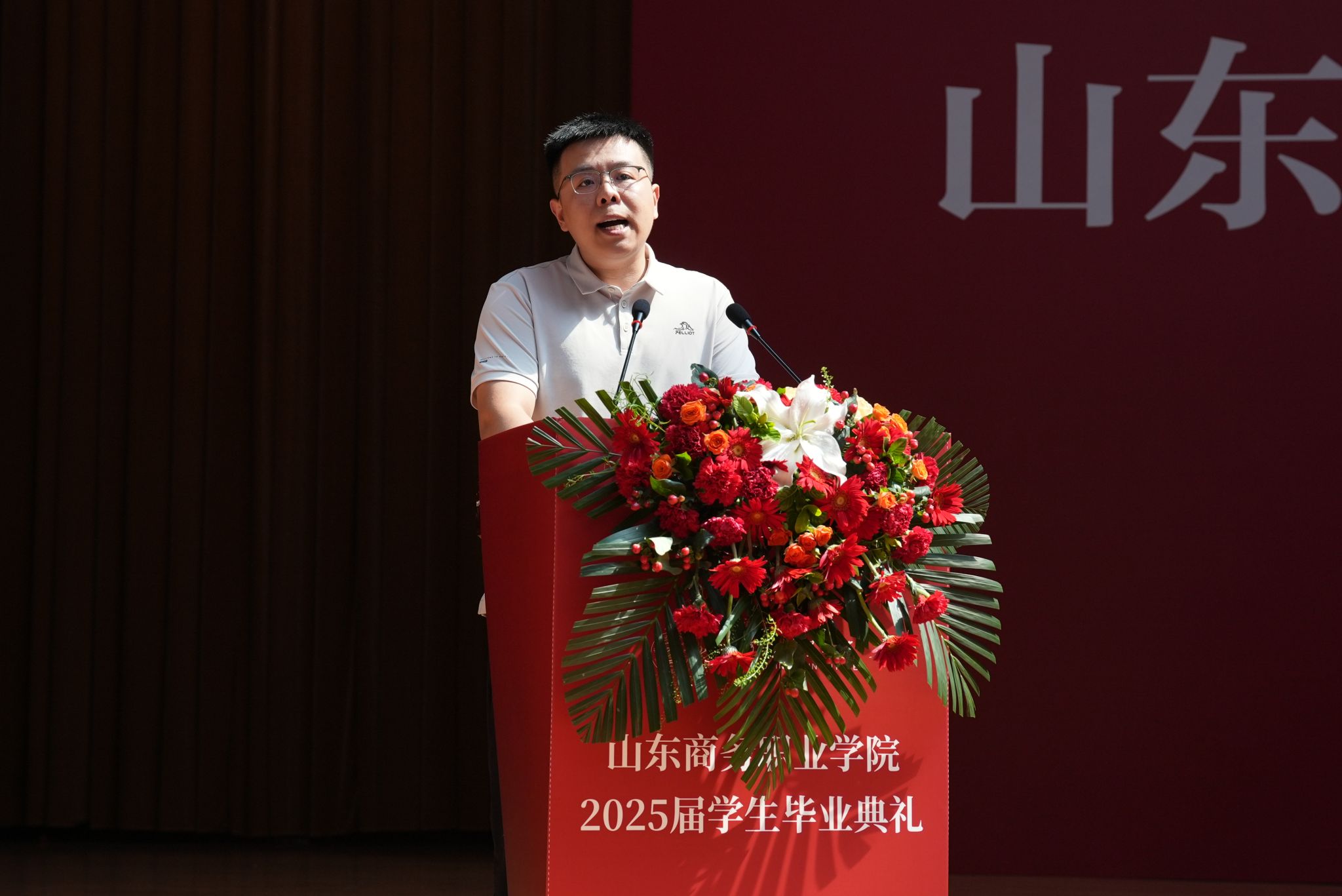 他指出,同学们此次离开商务的校园,再回来就有了新的身份——商务校友,他代表学校欢迎校友们在今年10月18日——学校50周年校庆之际再回来看看:“相信在那时,大家走在熟悉的校园里,眼中会看到不一样的风景,心中会有不一样的感受。” 同时,他为同学们送出了三句临别赠言:第一句“人有一技之长,不愁家里无粮”,希望大家能够苦练技能,在事业发展的道路上越走越远;第二句“宝刀不磨要生锈,人不学习要落后”,希望大家牢固树立终身学习理念,培养持续学习习惯,在实践中学习,在学习中实践,不断提升自我;最后一句“人前风光百般好,人后辛酸可知晓”,希望大家在工作岗位上敢于吃苦、甘于寂寞,坚信风雨过后,必有彩虹。