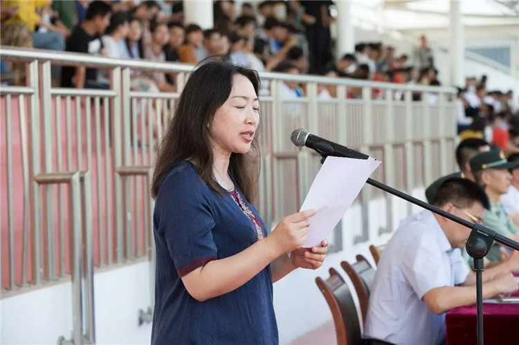 典礼在雄壮的国歌声中拉开帷幕。党委副书记刘艳伟作总结讲话。她指出,开训以来,在军训任务重、时间紧、要求高、强度大的情况下,教官们坚持“高标准、严要求、勤施教”的训练方针,带领同学们全身心地投入到训练当中,以“流血流汗不流泪,脱皮掉肉不掉队”的精神战胜了一个又一个困难,圆满地完成了军训团预定的各项任务。通过军训,广大同学经受了一次特殊的综合实践锻炼,接受了人民军队的好思想、好作风、好传统的熏陶,提高了政治觉悟,增强了集体主义观念和组织性、纪律性。通过军训,同学们初步掌握了基本的军事理论和军事技能,增强了国防意识和国防观念,也加深了对人民军队和现代军人的认识了解,激发了同学们的爱国主义热情。通过军训,同学们还锻炼了体魄,磨练了勇于吃苦的意志力和坚忍不拔的心理品质,希望每一名新生以此为起点,严格要求自己,珍惜学习机会,用好学习条件,树立起远大的学习理想,保持不竭的学习动力,矢志不渝,持之以恒,把自己培养成为德、智、体全面发展、具有良好综合素质、能担负振兴民族复兴重任的创造性人才!