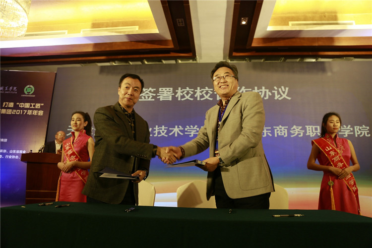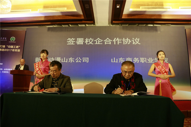 会上,烟台市粮食局与山东商务职业学院签署战略合作协议;新浪动漫与我校进行校企签约,成立“新浪动漫影视学院”;天津渤海职业技术学院与我校签订服务“一带一路”校校战略合作协议;天津职业技术师范大学与我校签署产学研合作协议。会议同时审议表决集团新增副理事长单位、理事单位和集团相应制度并一致通过。企业代表滨州中裕食品有限公司副总经理宋民松、烟台国际经济技术合作集团有限公司董事长刘治波分别上台发言。