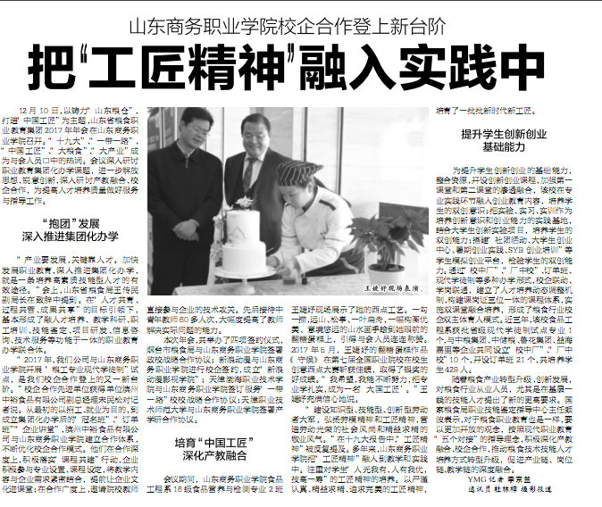 “建设知识型、技能型、创新型劳动者大军,弘扬劳模精神和工匠精神,营造劳动光荣的社会风尚和精益求精的敬业风气。”在十九大报告中,“工匠精神”被反复提及。多年来,山东商务职业学院把“工匠精神”融入到教学和实践中。注重对学生“人无我有,人有我优,技高一筹”的工匠精神的培养。以严谨认真、精益求精、追求完美的工匠精神,培育了一批批新时代新工匠。