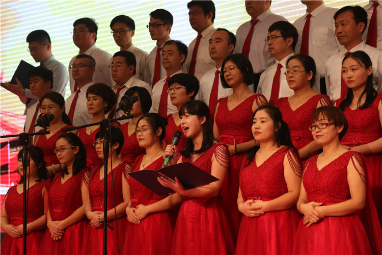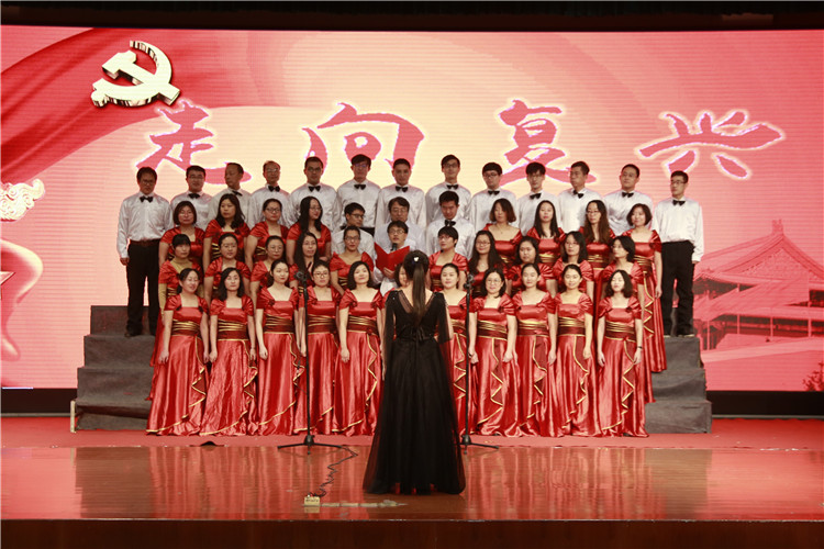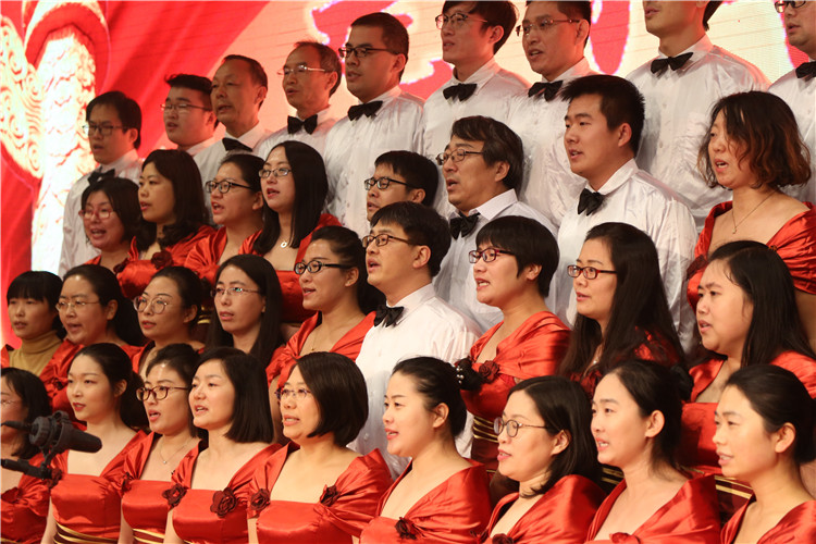 《我们走在大路上》,信息与艺术设计系党总支合唱队带来的红色经典歌曲,男女朗诵、大合唱、小领唱的多样形式让人眼前一亮;建筑工程系党总支合唱队的《爱我中华》,鲜艳的民族服装和赏心悦目的伴舞,惊艳全场;会计系党总支合唱队的《中国,中国,鲜红的太阳永不落》,我的祖国,是浩荡的黄河长江、优雅的唐诗宋词、迷人的楷书狂草,唱你千遍万遍还是喜欢;机关党总支第一合唱队演唱的《再唱山歌给党听》、《保卫黄河》,饱满的情绪、新颖的轮唱、优美的舞姿、振奋的宣言,掀起全场新的高潮,赢得阵阵掌声;机关党总支第三合唱队的《不忘初心》,强大的演唱阵容给观众留下深刻印象,两个小朋友的加盟助演,萌翻温暖现场听众;比赛在机电工程系党总支合唱队的《歌唱祖国》的豪迈歌声中落下帷幕。