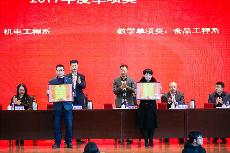 会上,副院长陶传蔚宣读了《关于表彰2017年度先进集体和先进个人的决定》的文件。学校领导为相关获奖单位和个人颁发了荣誉证书。(办公室)