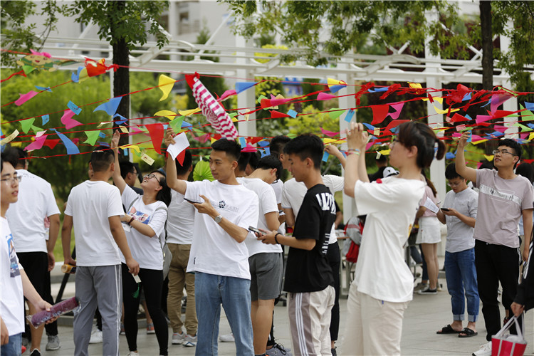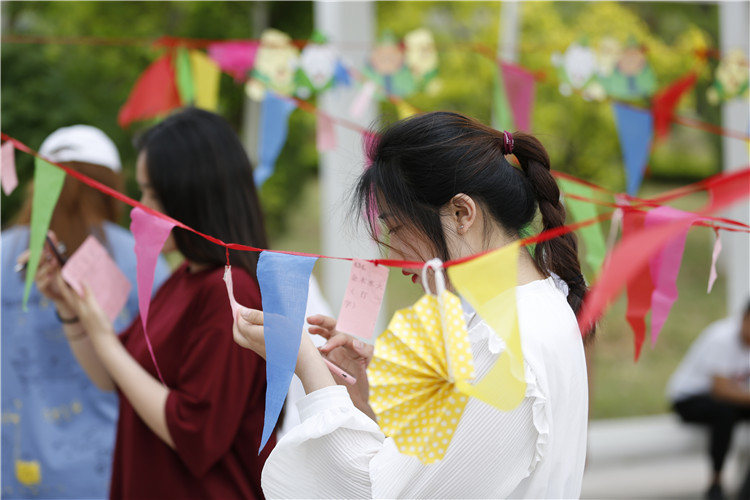 本站讯 5月30日下午2点,“五月五,过端午,赛龙舟,敲锣鼓,端午习俗传千古”,又是一年粽叶飘香时,又是一年端午佳节至。为了传承和弘扬中华传统文化,我校图书馆和饮食管理中心在中心大道共同举办“端午嘉年华——猜灯谜 包粽子 赢多肉”活动。活动精心布置百米彩旗长廊,并装饰了众多端午风情挂件,和风阵阵,彩旗飘展,人潮踊跃,一派热闹欢乐景象!