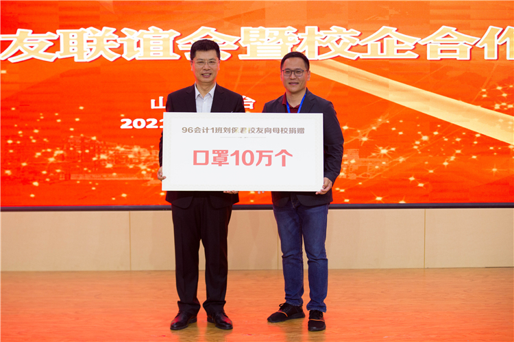论坛随后进行捐赠仪式,青岛、烟台和北京校友联谊会分别向母校捐赠12.9万元人民币、9.58万元人民币和口罩10万个;青岛校友吴秀梅向学校捐赠珍藏多年的长约1.8米“石家庄”号导弹驱逐舰镀金模型1艘;潍坊校友李友宽向学校捐赠珍藏40多年的算盘1把,该算盘是该校友当年上学时代表学校获得的华东华北大区珠算比赛第一名的奖品,耿建敏书记向他们颁发了捐赠证书。接着吴秀梅等33名校友做了精彩发言。