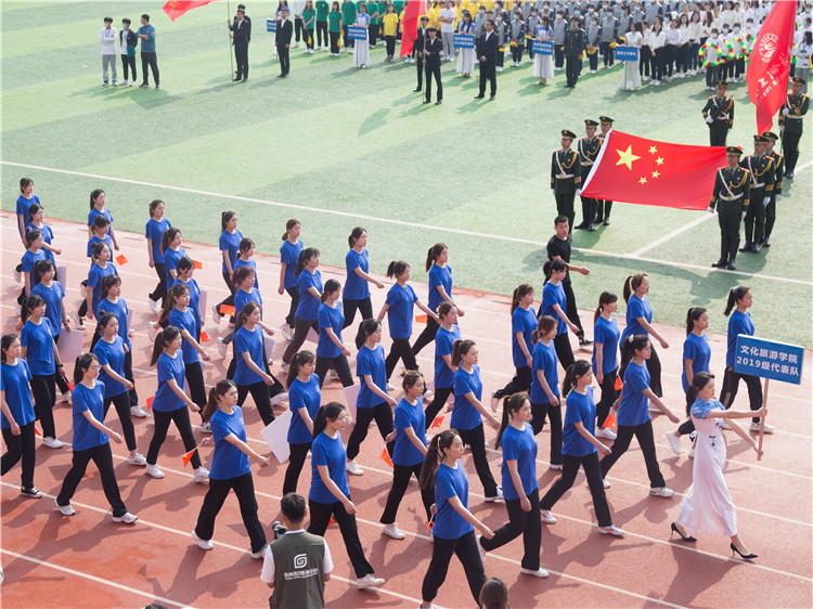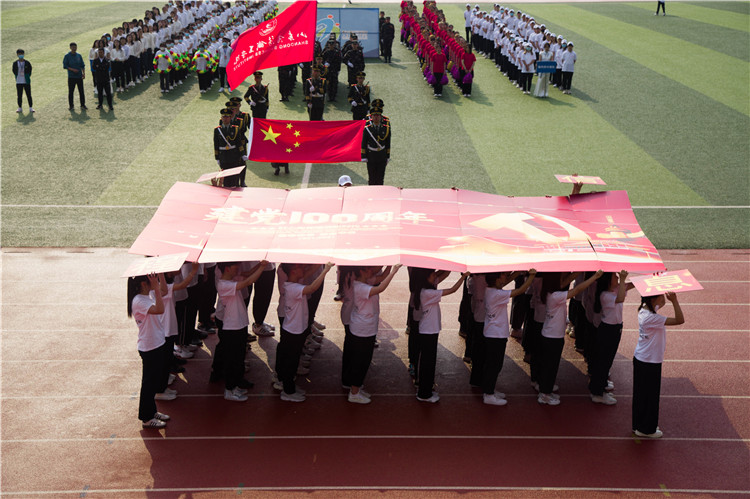 21日上午7点40分,本届运动会正式拉开帷幕,开幕式由我校副院长王伟存主持,伴随着激昂的《运动员进行曲》,国旗护卫队、会徽队、花束队、花环队、彩旗队以及裁判员代表队、教职工代表队、各二级学院2019级2020级运动员代表队依次入场。各二级学院分别进行了精彩纷呈的节目表演,不时引来观众阵阵掌声。表演的作品紧扣专业特色,寓思想性艺术性观赏性于一体,弘扬主旋律,传播正能量,充分展现了商务学子良好的精神风貌。特别是方队组合出的国旗形象以及蕴含的庆党华诞的主题,寓意着我校学子对党和国家的感恩,以及投身祖国建设的激情。