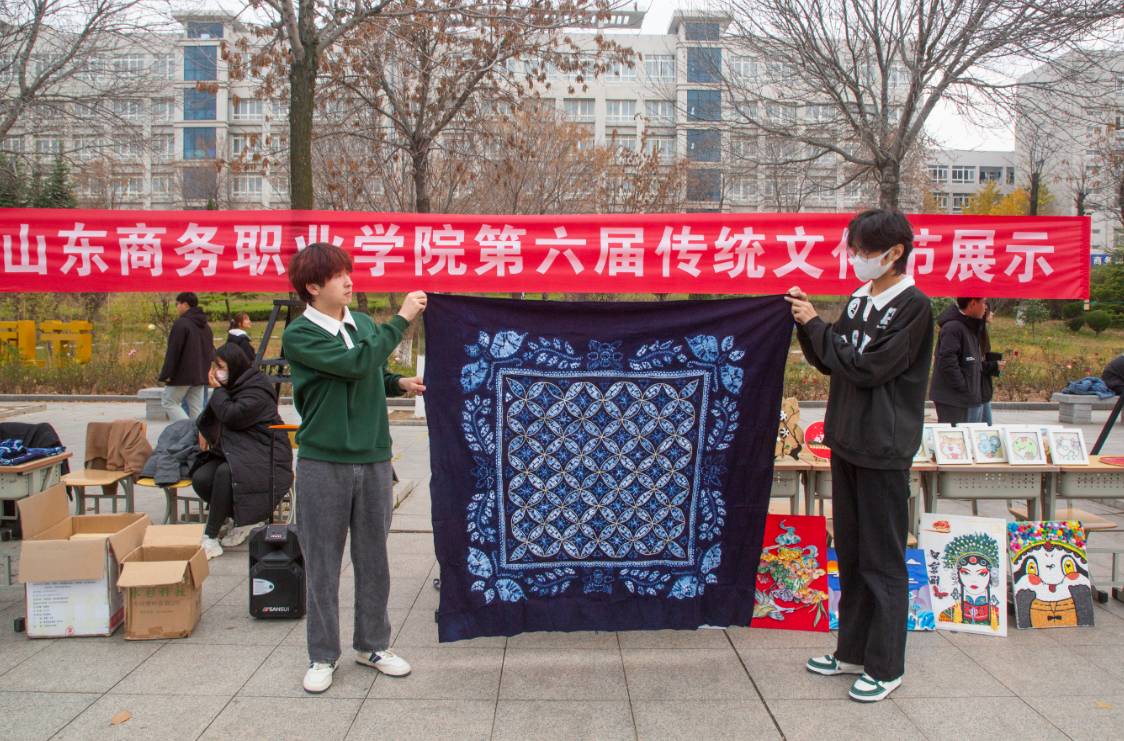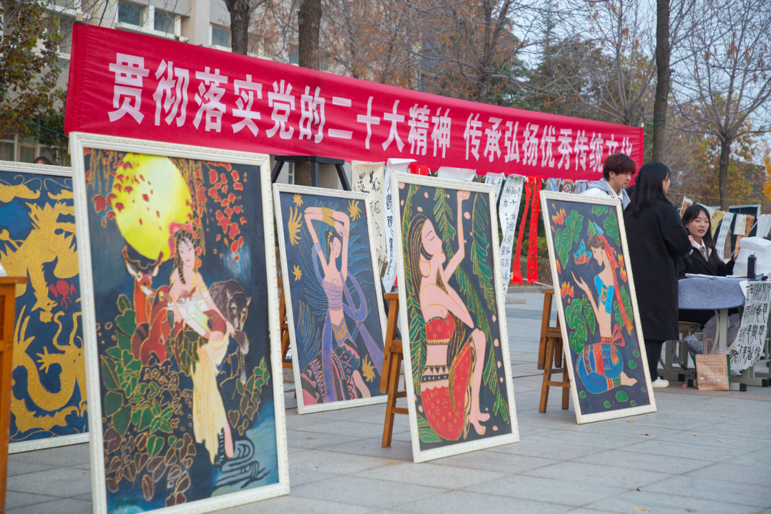 鲁绣非物质文化遗产传承人张京艳和剪纸传承人韩月湖两位大师受邀而来,向学生展示了鲁绣、剪纸技艺,其精湛的技艺、精美的作品,更是吸引了众多学生前来观看、学习和体验。