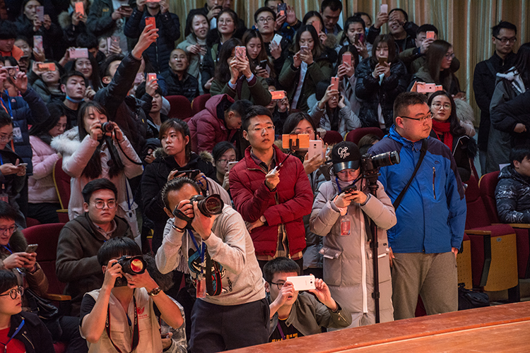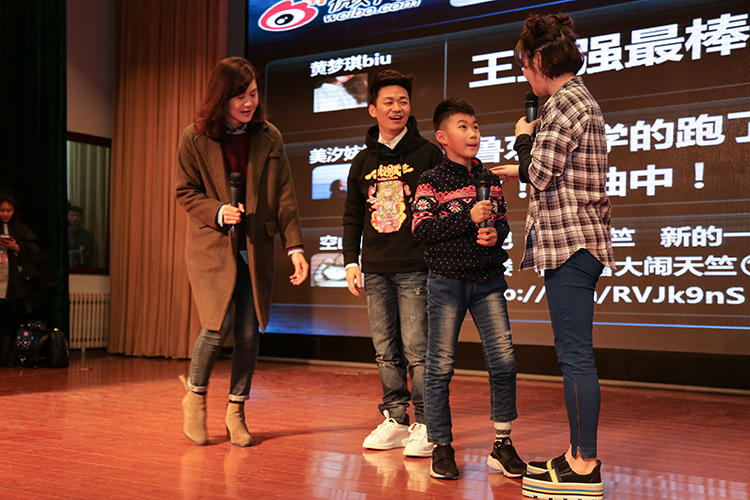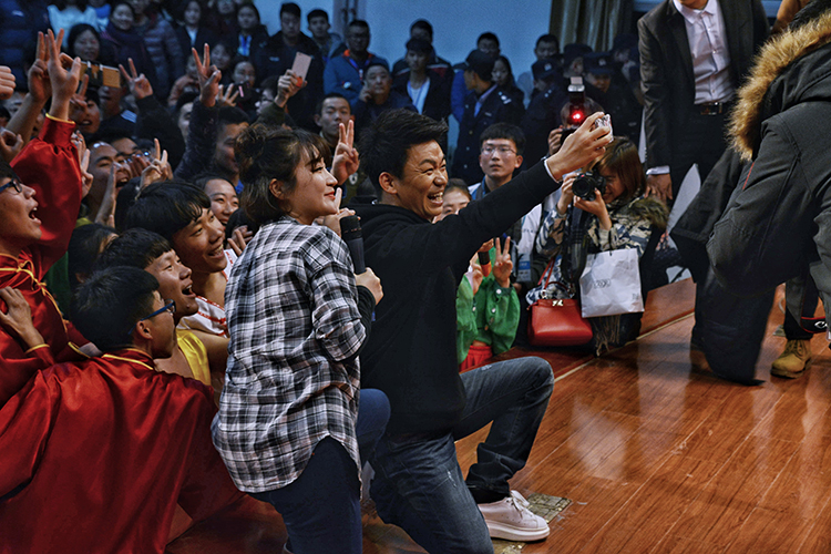 见面分享会的最后,王宝强与主持人方龄一同与我校师生自拍合影留念。