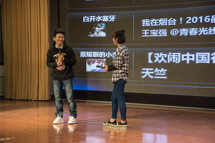 12月23日,电影《大闹天竺》“欢闹中国行”见面分享会来到烟台,内地演员兼新晋导演王宝强现身我校音乐厅,同主持人方龄一起与我校师生进行了亲切的交流活动,分享《大闹天竺》的拍摄趣事。