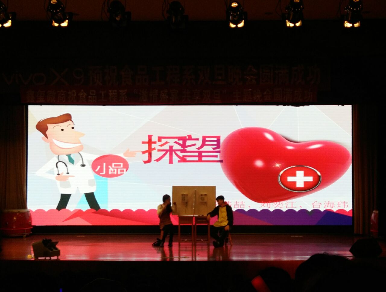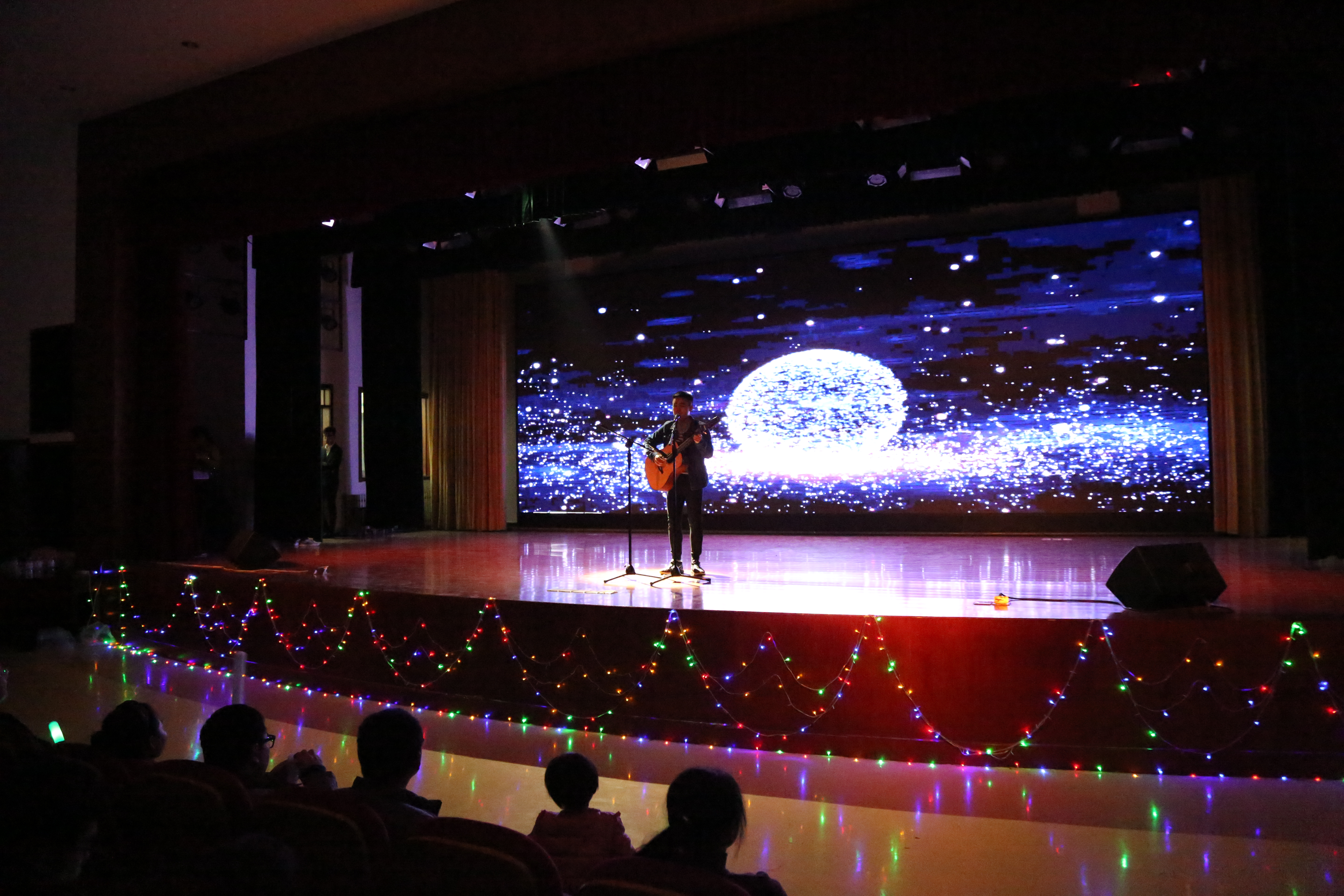 晚会开始前大屏幕上播放了同学们精心制作的小咖秀,同时也对在场的情侣分发了平安果,在平安之夜给予大家最温暖的祝福,点燃了现场的气氛。随后,一场激昂热烈的打鼓表演为本次晚会拉开了帷幕,整场晚会经典与流行并存,热烈与温暖同在,形式多样,精彩纷呈,歌曲串烧《友情岁月》、《夏天的风》、《过火》等轮番上阵,或活泼动感,或浪漫温馨,或轻快悠扬,风格各异,变幻多姿。各种舞蹈节目花样繁多,有优美高雅的华尔兹,热辣十足的拉丁爵士串烧,新奇有趣的自编舞蹈《放纵》,让观众们大饱眼福,欢呼喝彩声不断。还有逗人发笑,创意十足的小品,让大家捧腹大笑。此外,此次晚会还在节目中穿插了摇奖、抢红包和互动游戏,让同学们参与到了此次晚会中来。尾声时,以一首经典的青苹果乐园作为此次晚会的压轴,歌手们下台与同学们的互动将此次晚会推向了高潮。(刘丽)