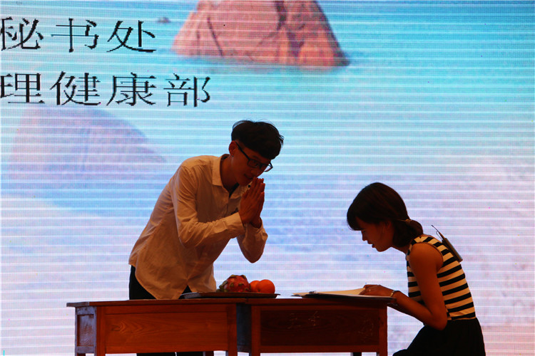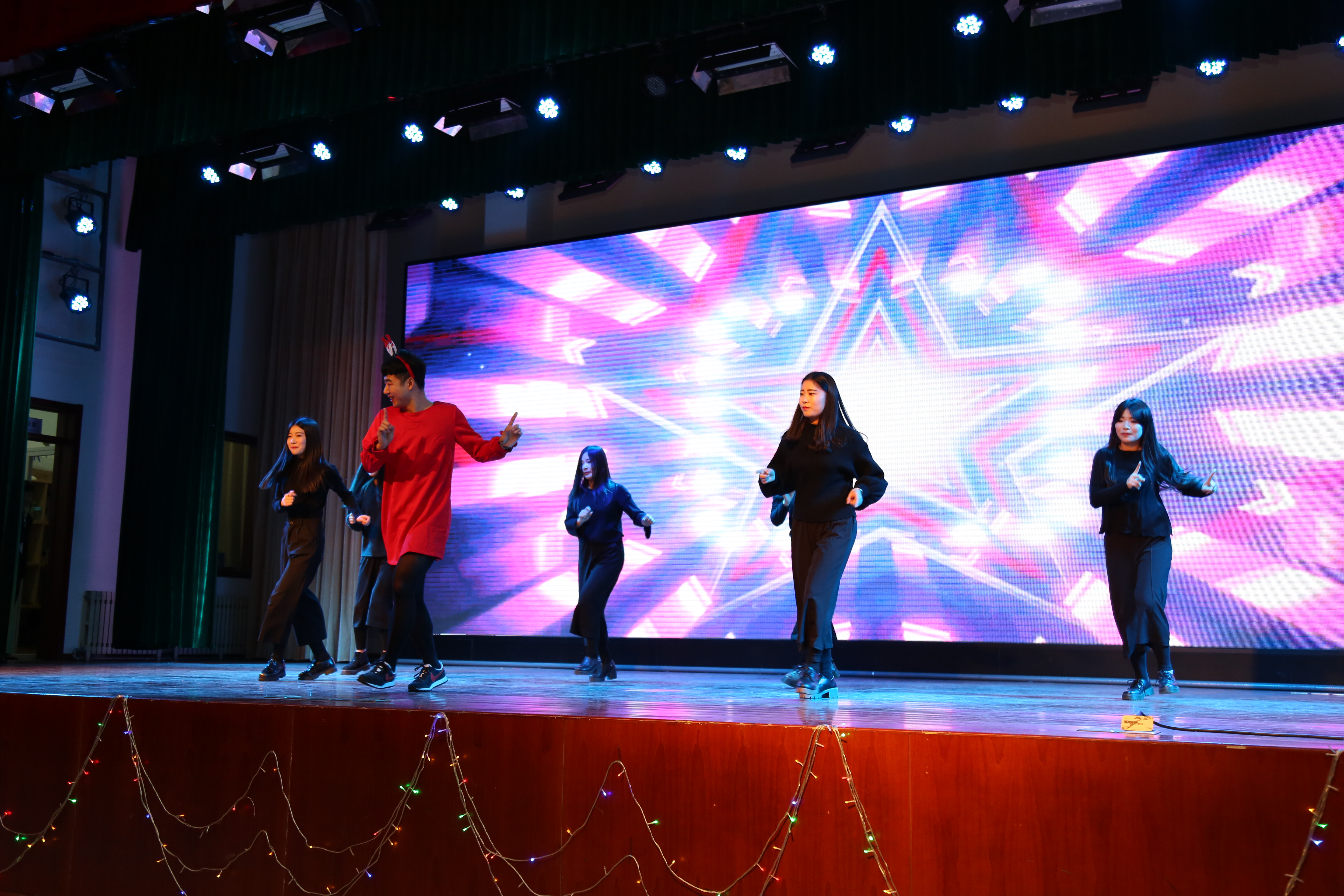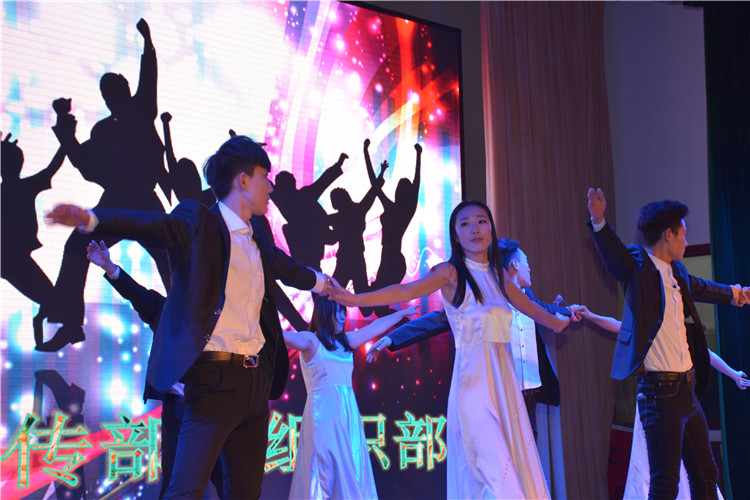 元旦是一年的起点,快乐则是人生的重点,伴随着一段精彩的开场舞,晚会正式开始。同学们用自己精心准备的节目表达了对美好生活的向往和对老师辛勤付出的感激之情。劳卫部的非诚勿扰、女生部的印度舞、生活部的good boy、宣传部的uptown funk 、组织部的worth it等等,还有幽默的小品《总监驾到》、《吃面》等一大批优秀文娱节目激情上演。精彩的节目使整个会场气氛激扬澎湃、掌声连连、笑声不断,此外,各部长带来了歌曲串烧,舞蹈串烧,让我们看到了他们的另一面。历时3个多小时的晚会在同学们意犹未尽的喝彩声中完美落幕。(杨红霞)
