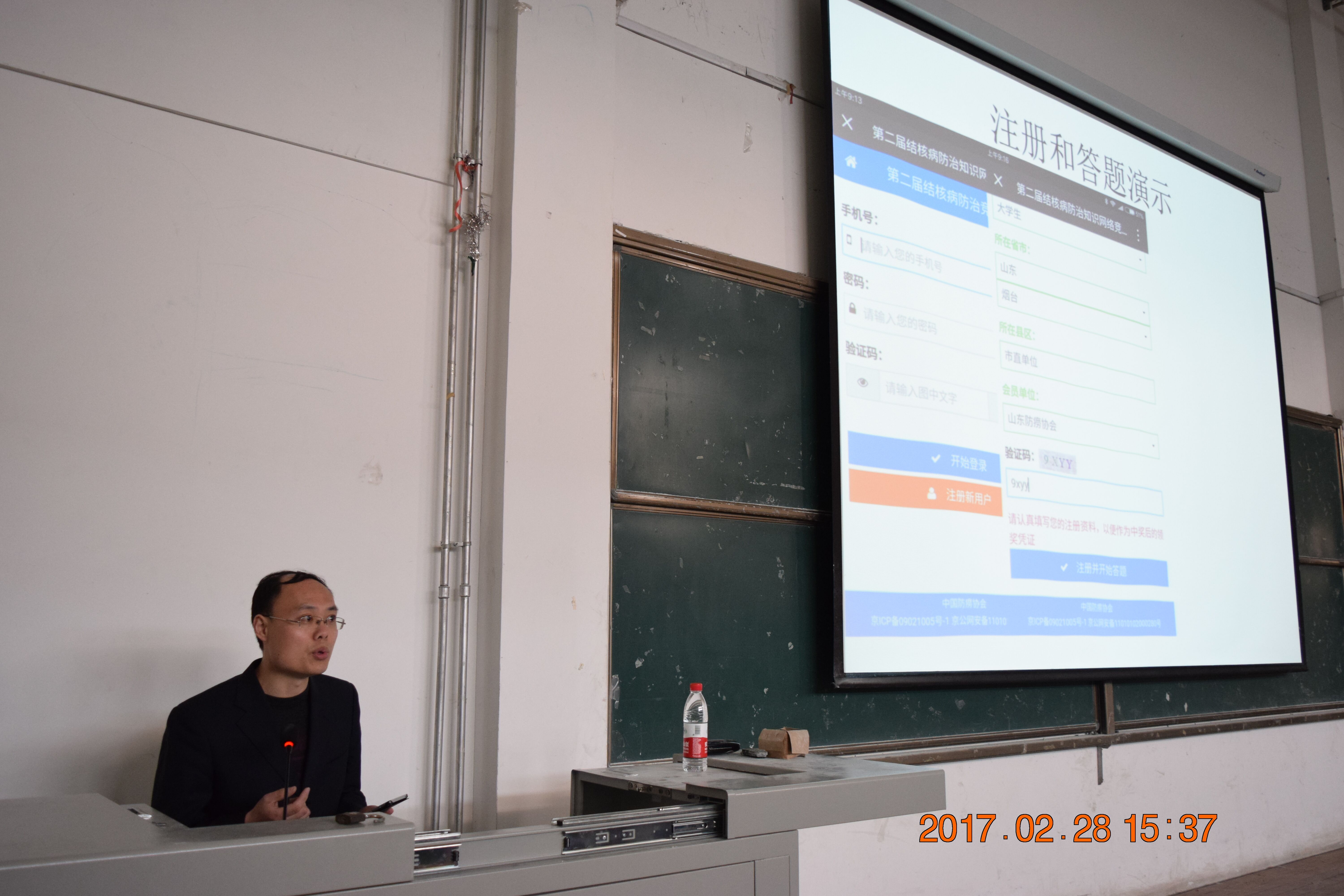 授课专家以PPT放映的形式向学生们深入宣传结核病的防治知识及国家采取的对肺结核可疑者免费检查、对传染性肺结核病人免费治疗、结核病流行的严峻形势等有关内容,并与同学进行了现场互动交流,充分调动了同学们的积极性,学院总务处宋处长生趣回答学生提出的疑难问题,现场气氛十分活跃,讲座结束后,进行了答题抢红包活动,为此次讲座画上了一个圆满的句号。