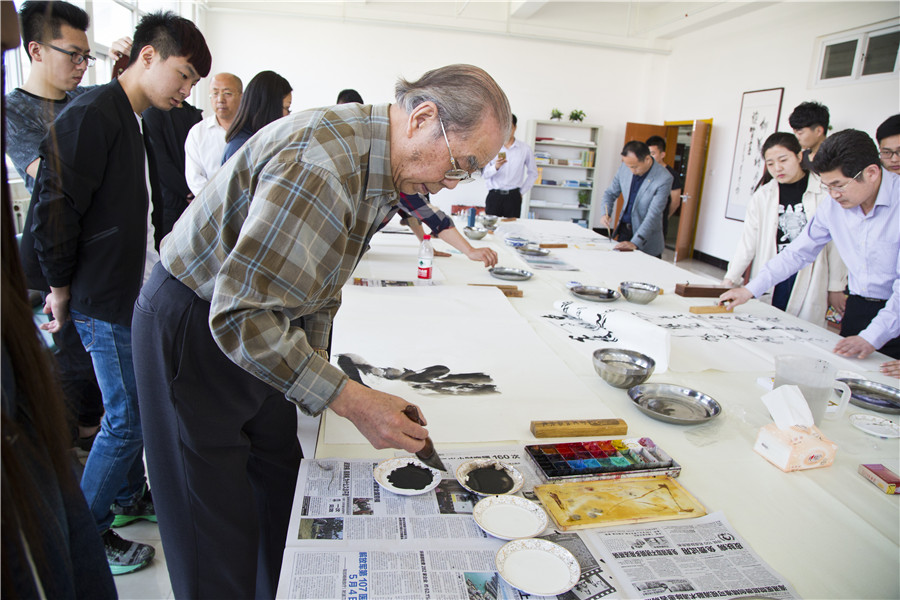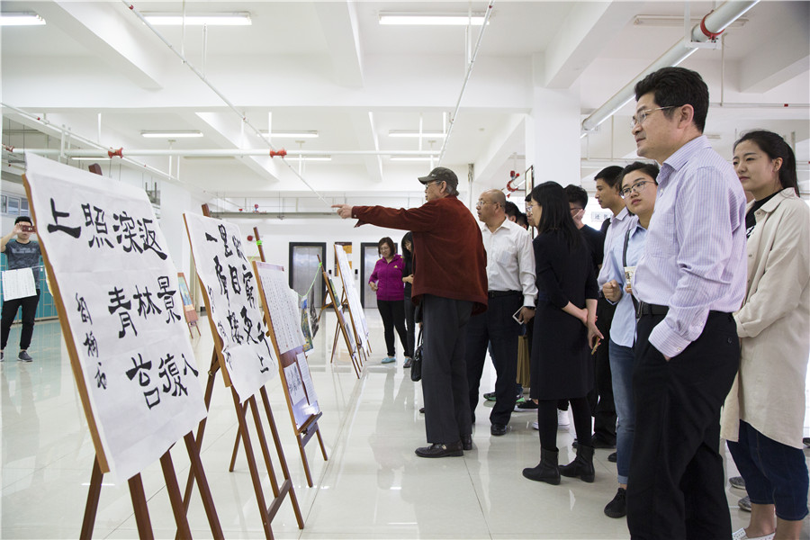 由图书馆邀请烟台书法家协会的大师们现场作画,精彩技艺吸引了众人的目光,博得来访人员的阵阵掌声。