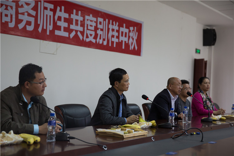 10月3日,在中秋佳节到来之际,山东商务职业学院副院长陶传蔚,基础教学部、办公室、学生处(团委)相关领导教师共同参加了“喜迎十九大,商务师生共度别样中秋”活动,与中秋期间留校学生共迎团圆佳节。当天下午,在学校行政楼一楼学习中心,副院长陶传蔚与各系部50多名留校学生代表欢聚一堂,喜迎中秋佳节的到来。陶院长代表学校向留校学生送上中秋祝福。他就美国刚刚发生的拉斯维加斯枪击案展开谈话,指出我们成长在一个和平强大的国家,国民的安全幸福指数日益提升,幸福感就是你或许并不在意而它却时刻紧紧包围着你。同学们畅所欲言,表达对祖国日益强大和幸福学习生活的感悟与理解,并纷纷表示一定要好好学习,结过历史的接力棒,用伟大的中国梦激扬青春梦,努力成为有商务学子核心品质的优秀青年,勇当时代先锋、绽放青春力量。