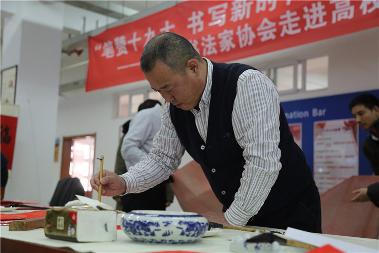 春风化雨,润物无声。书法家们在这次活动创作了大量书法作品,为我校留下了珍贵的墨宝,也通过书法这一高雅的艺术形式,弘扬了十九大精神,促进了我校师生对十九大精神的理解和领悟。
